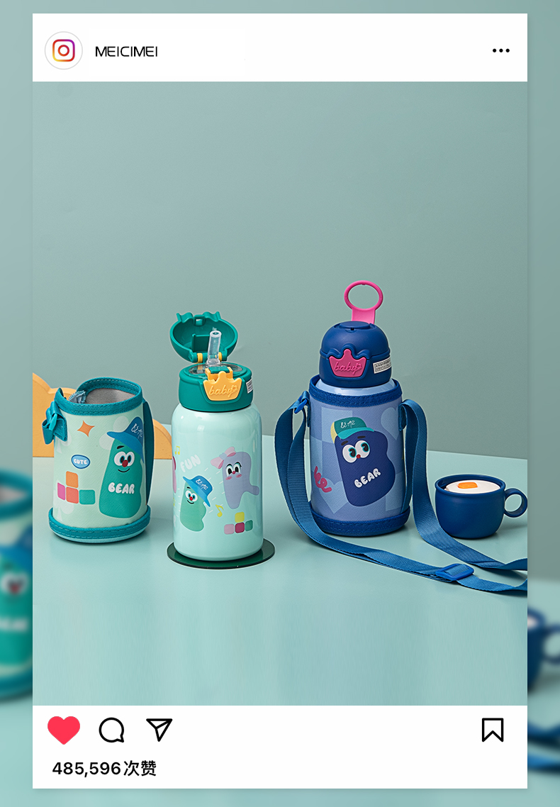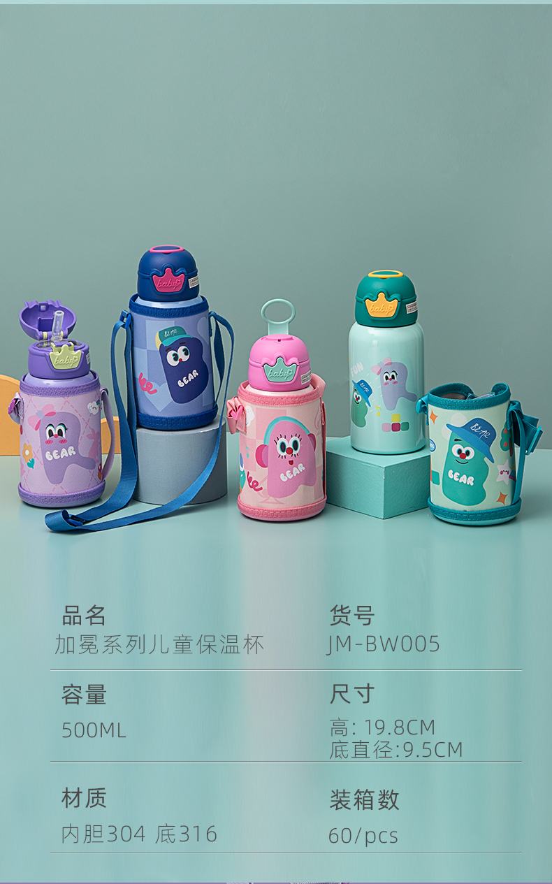 500ML普通盖硅胶套果冻吸管盖儿童保温杯可爱吸管水杯