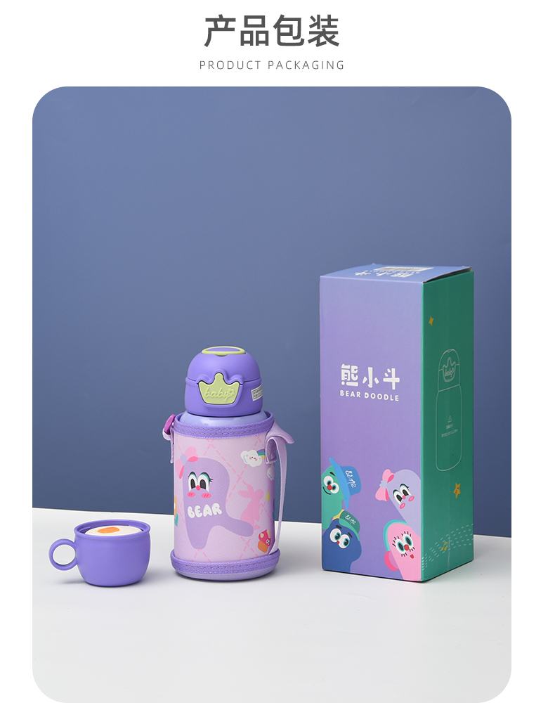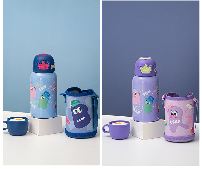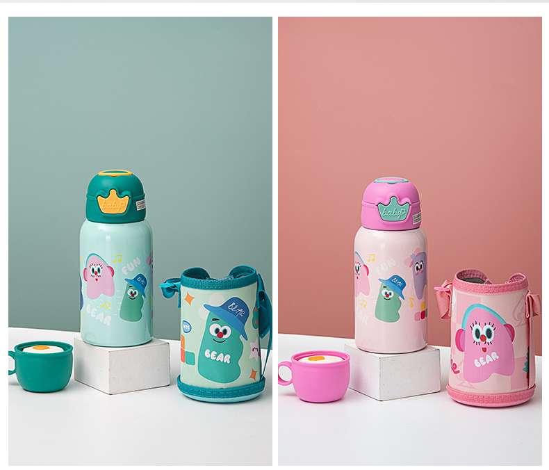 500ML卡通多多熊啵啵儿童保温杯316不锈钢一杯两盖水杯