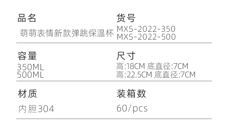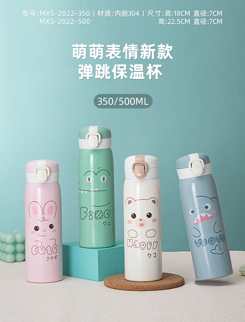500ML萌萌表情新款弹跳保温杯304不锈钢卡通可爱水杯