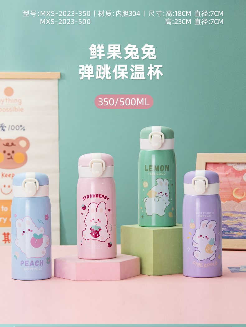 350ML卡通小乖印章弹跳保温杯304不锈钢直饮水杯