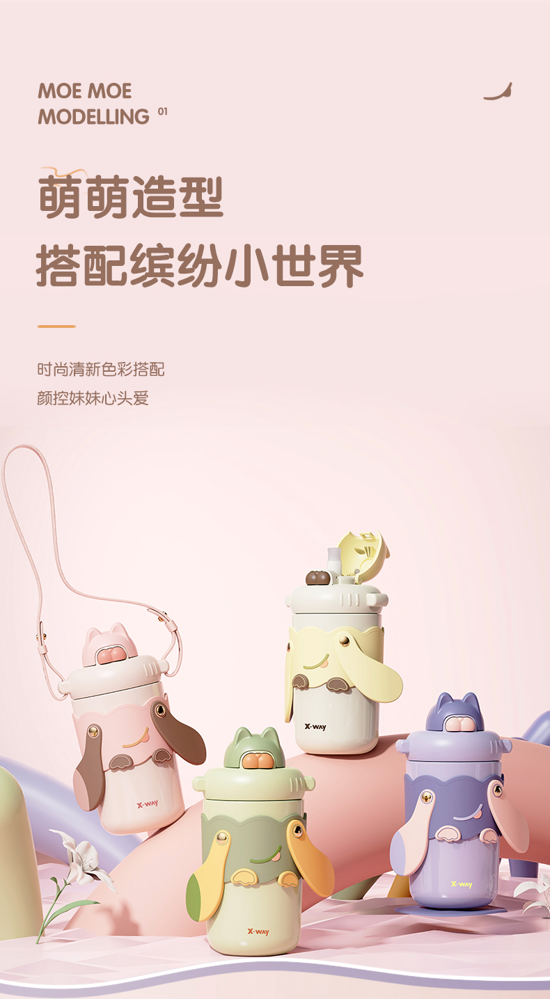350ML元气物语塑吊保温杯304不锈钢可爱小清新水杯