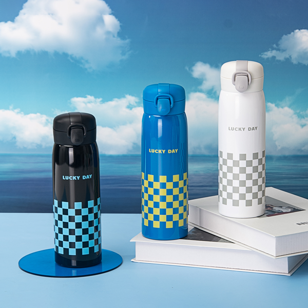 500ML创意棋盘格子弹盖保温杯304不锈钢子弹头水杯