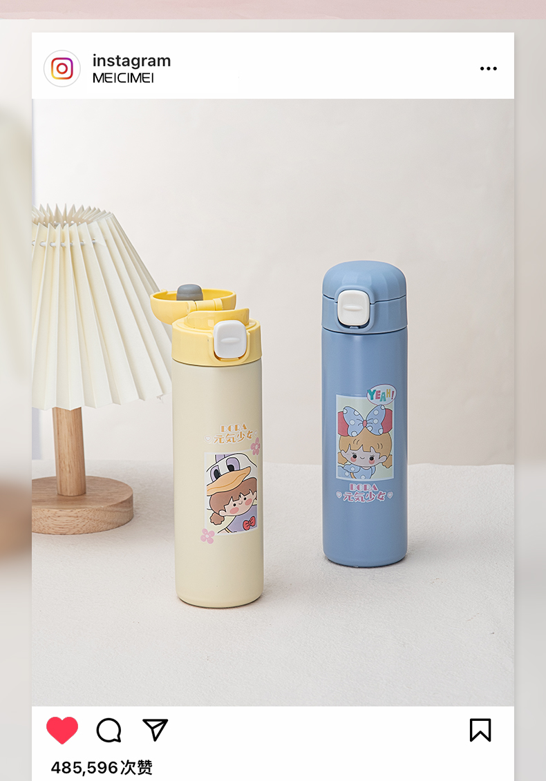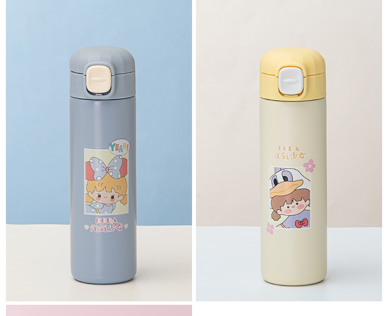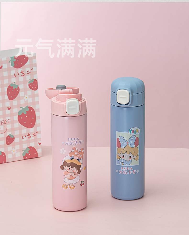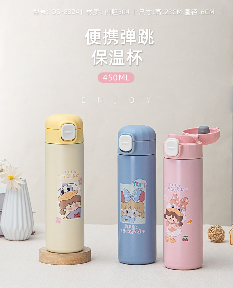 450ML商务弹跳保温杯卡通可爱少女心ins风创意水杯子
