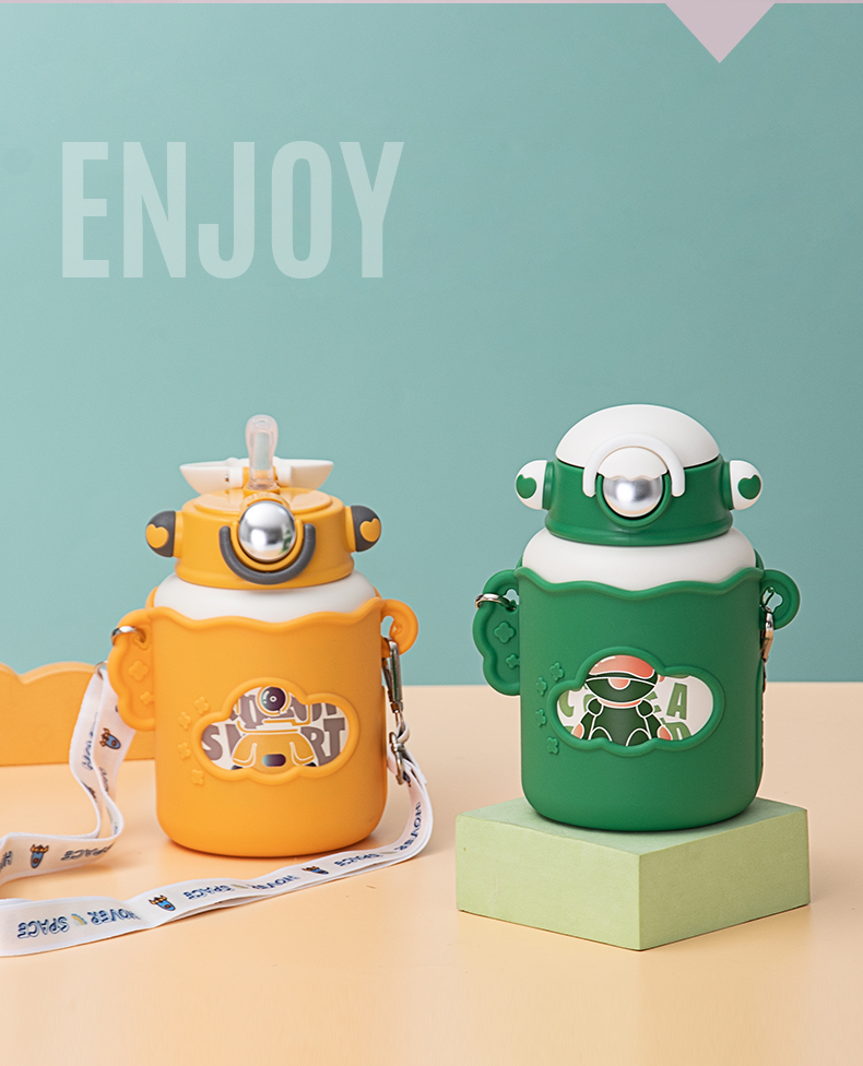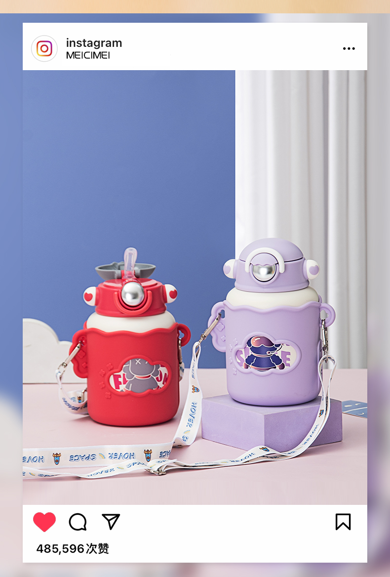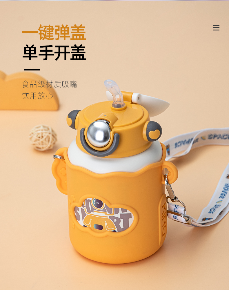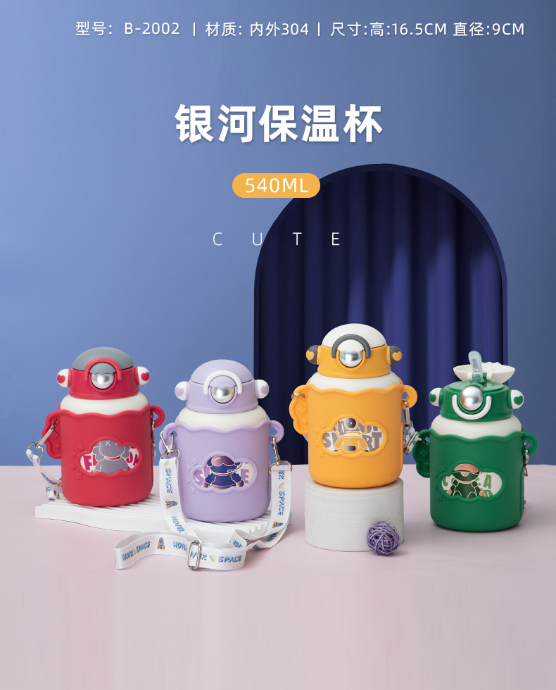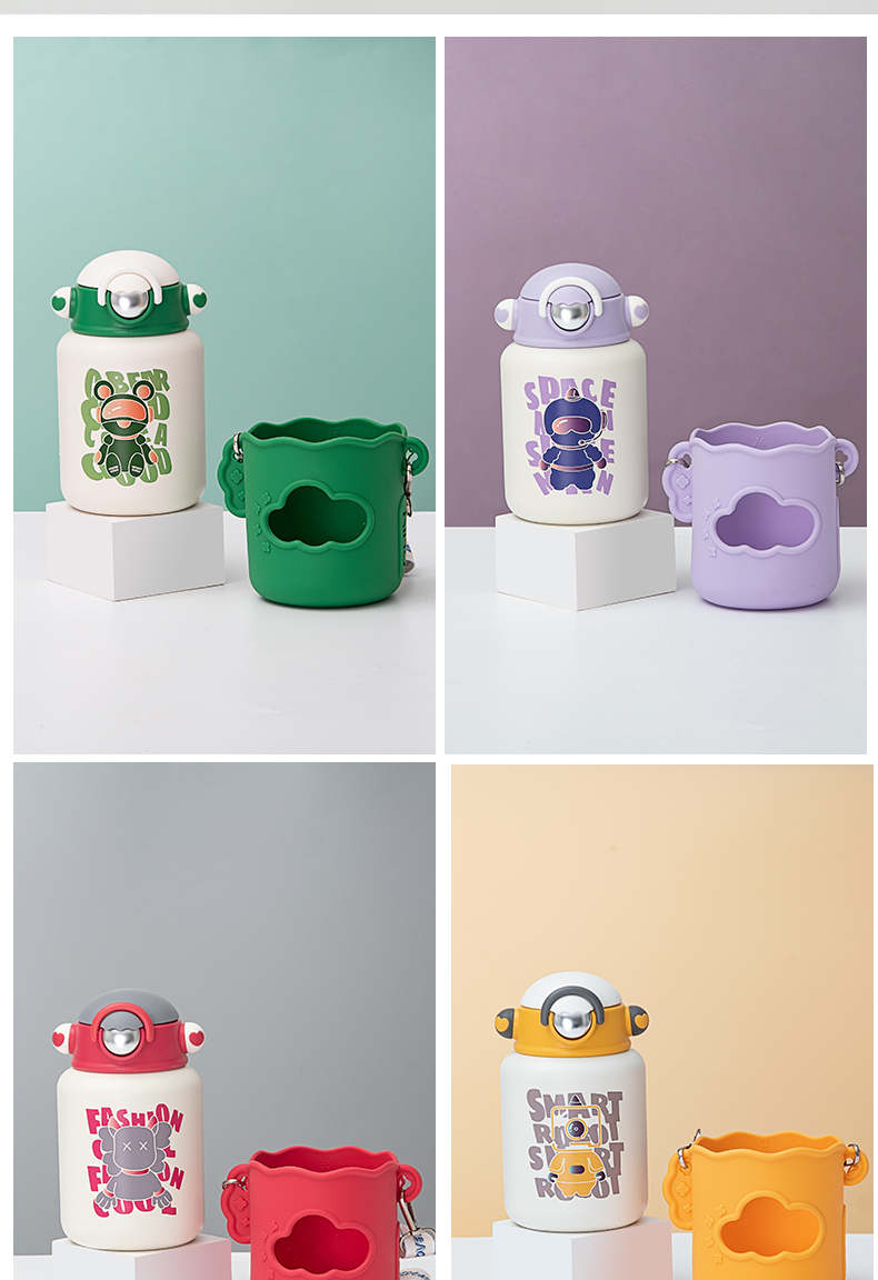 500ML温显盖硅胶套果冻吸管盖儿童保温杯可爱吸管水杯
