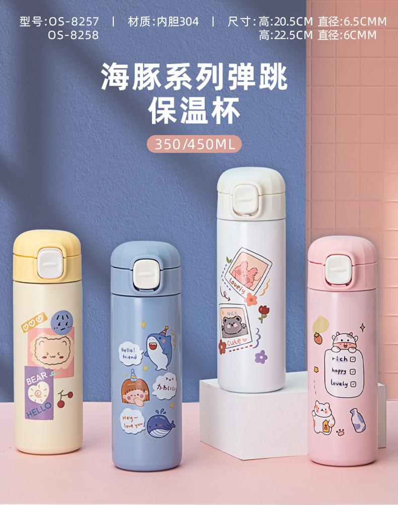 450ML酷酷动物弹跳保温杯304不锈钢便携直饮水杯