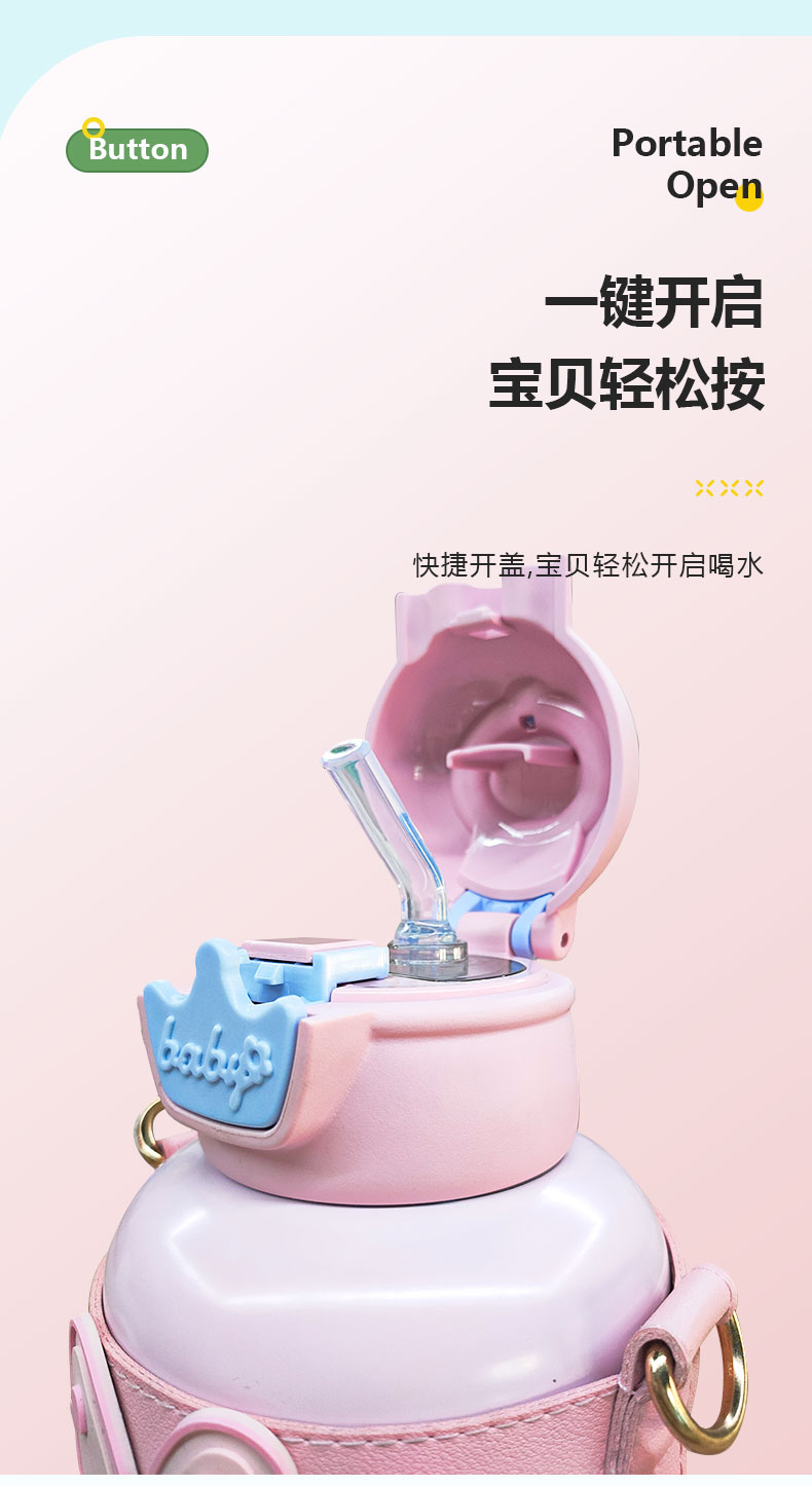 500ML温显盖硅胶套果冻吸管盖儿童保温杯可爱吸管水杯