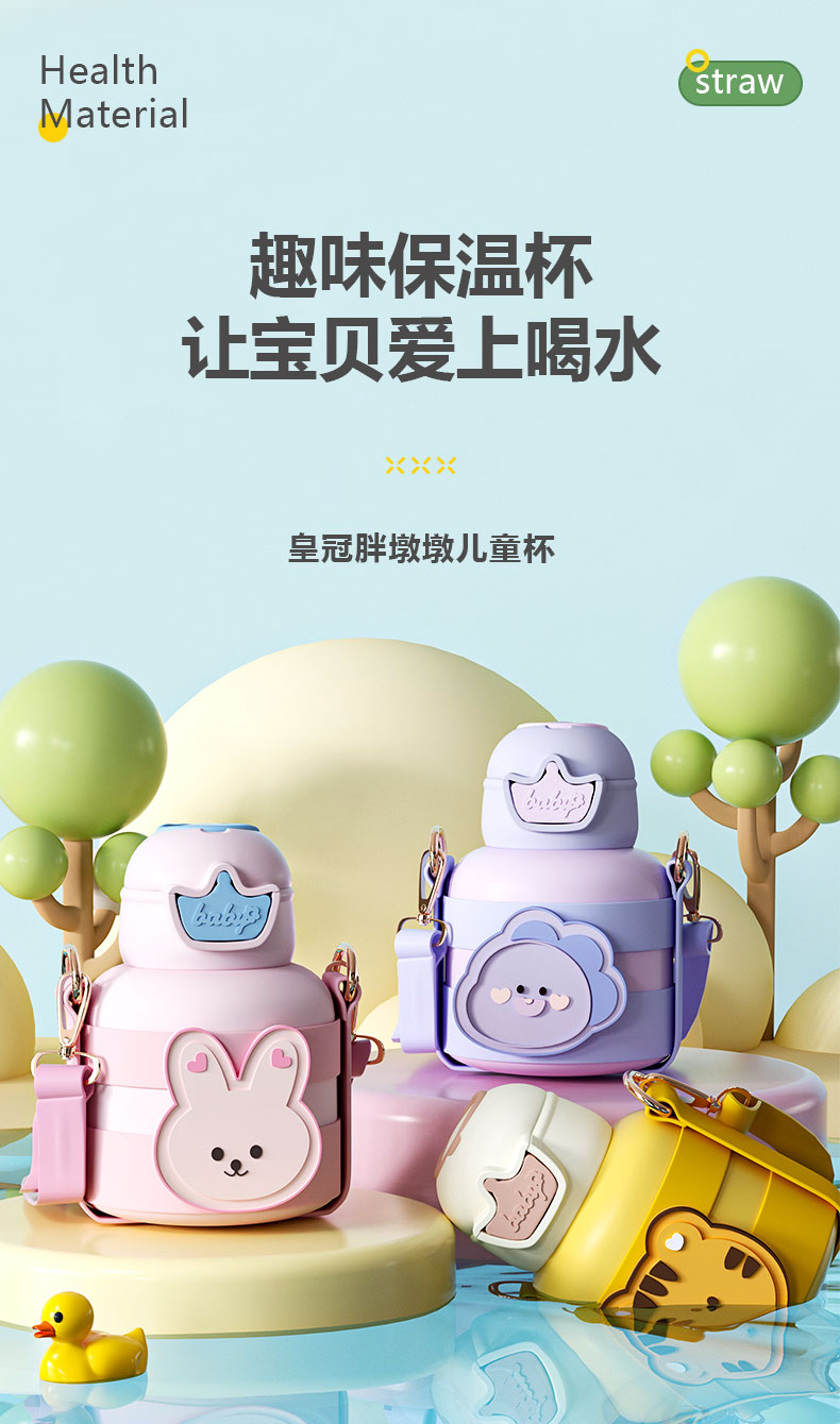 450ML皇冠猴叫叫儿童保温杯316不锈钢一杯双盖儿童壶