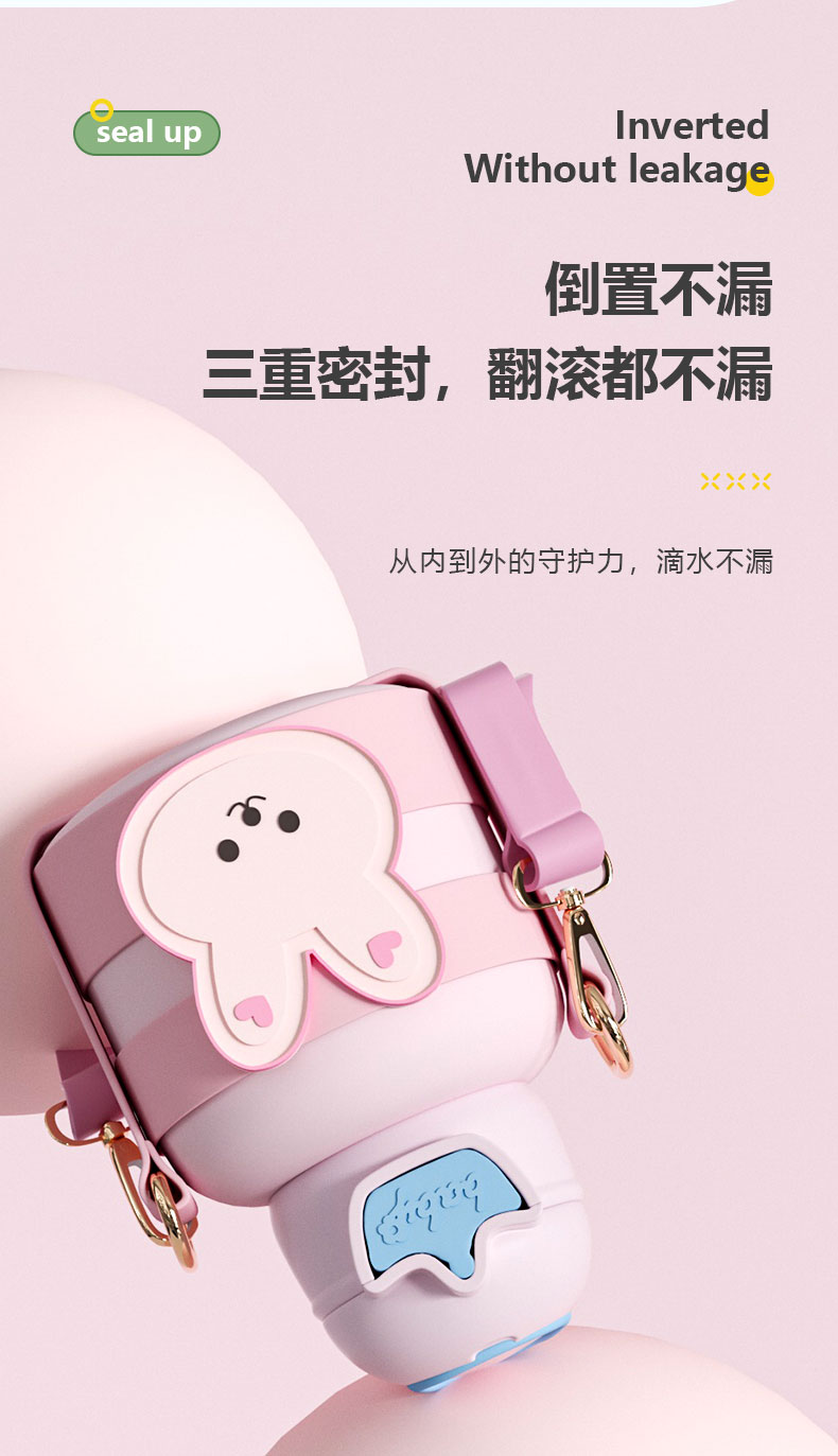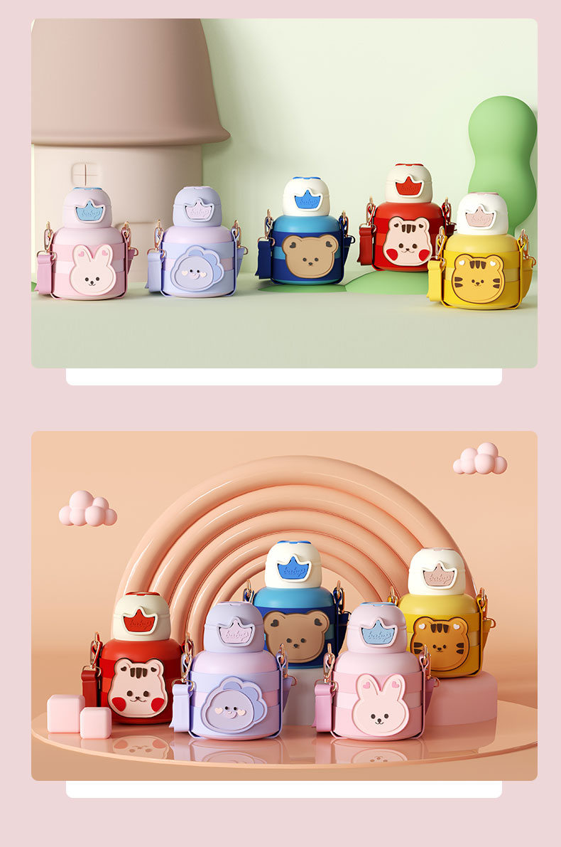 500ML多多熊啵啵书包儿童保温杯316不锈钢可爱吸管杯