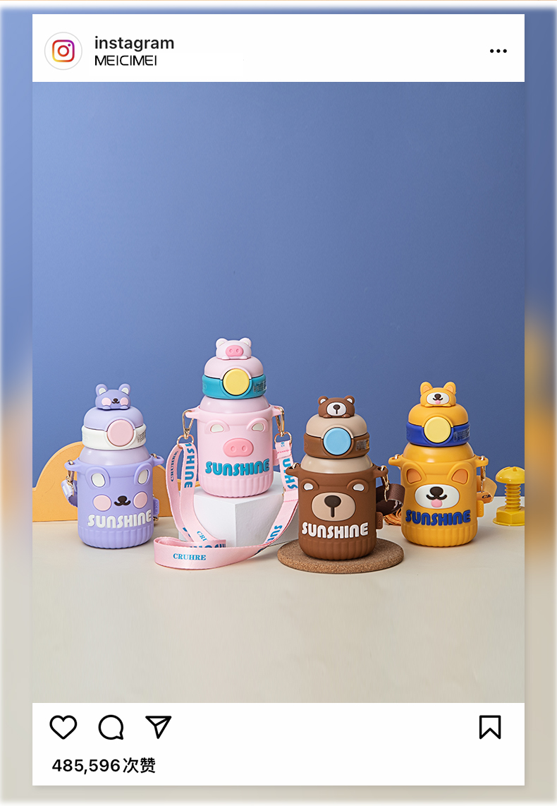 600ML卡通小萌兔小天使保温杯316不锈钢一杯两盖水杯