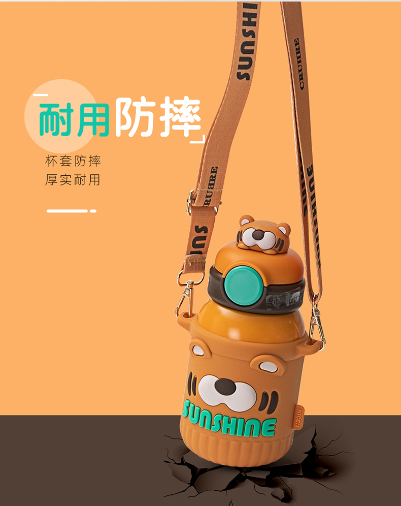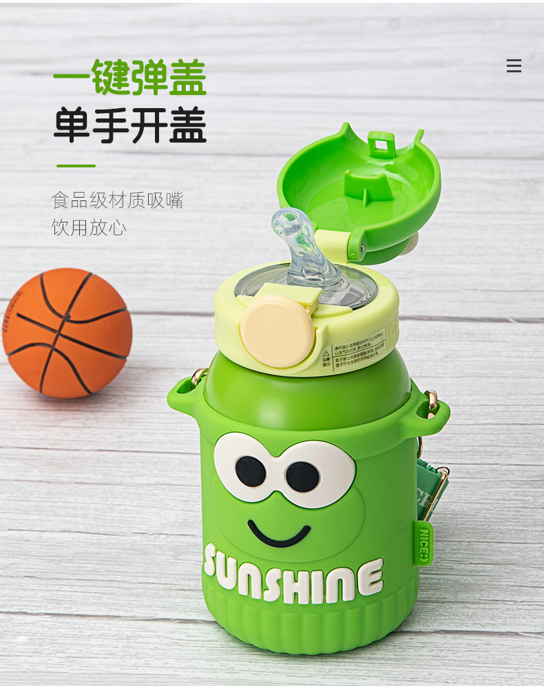 样品星兔创意卡通水杯儿童弹跳吸管杯可爱运动户外背带学生塑料杯