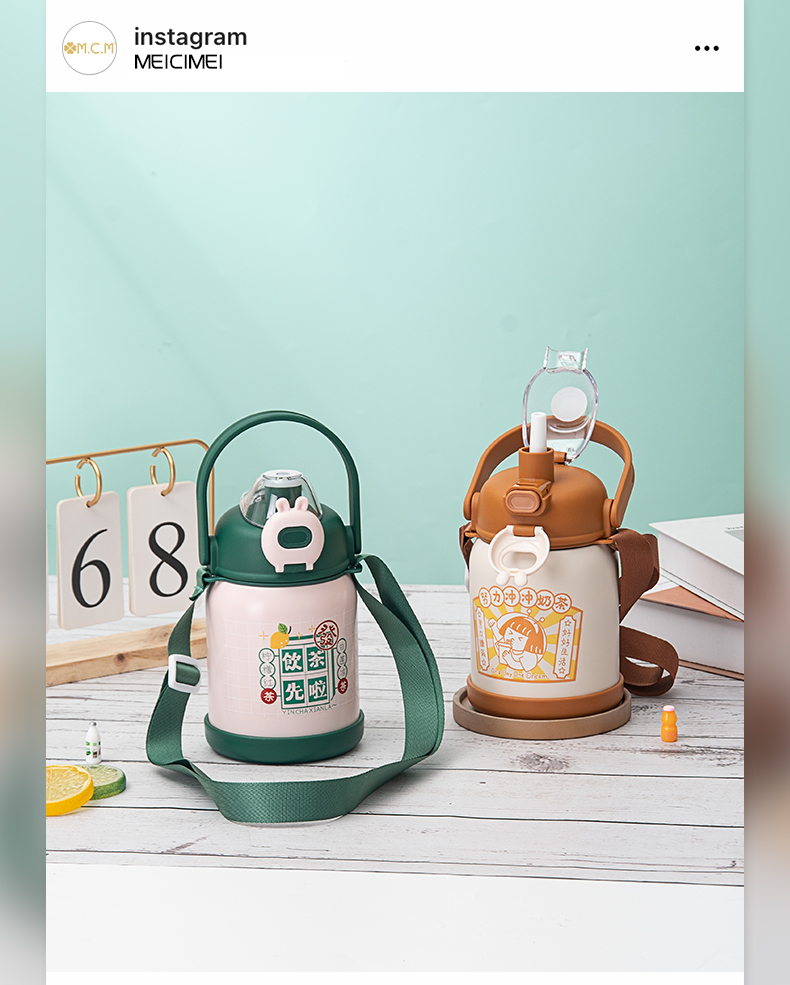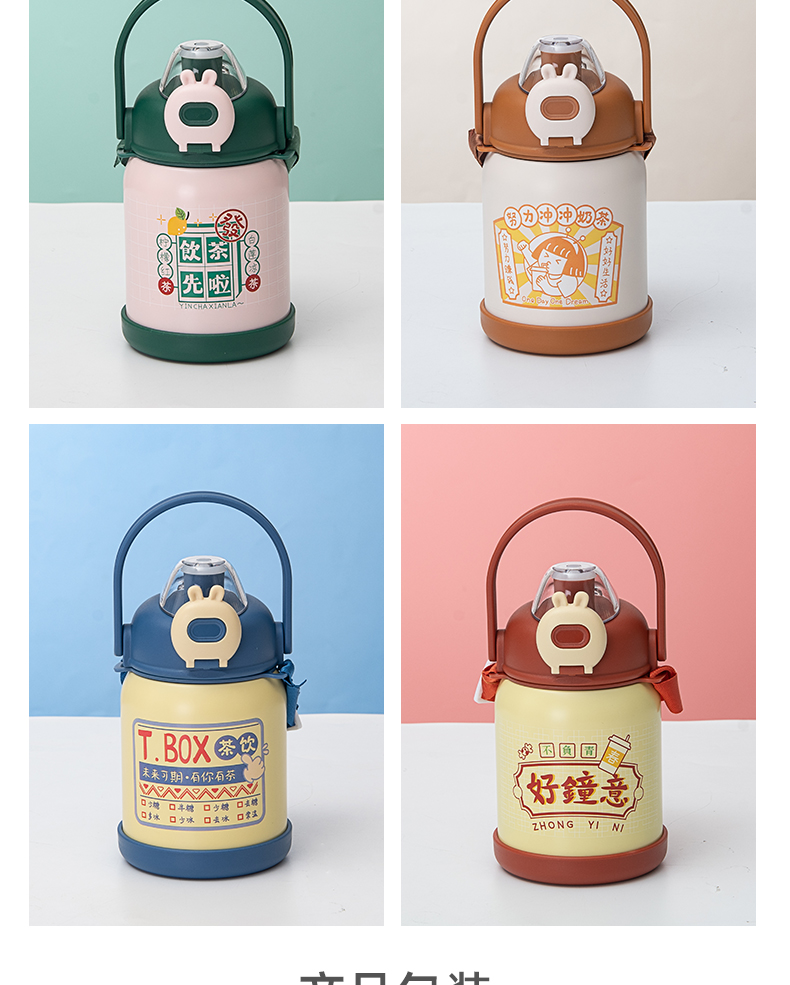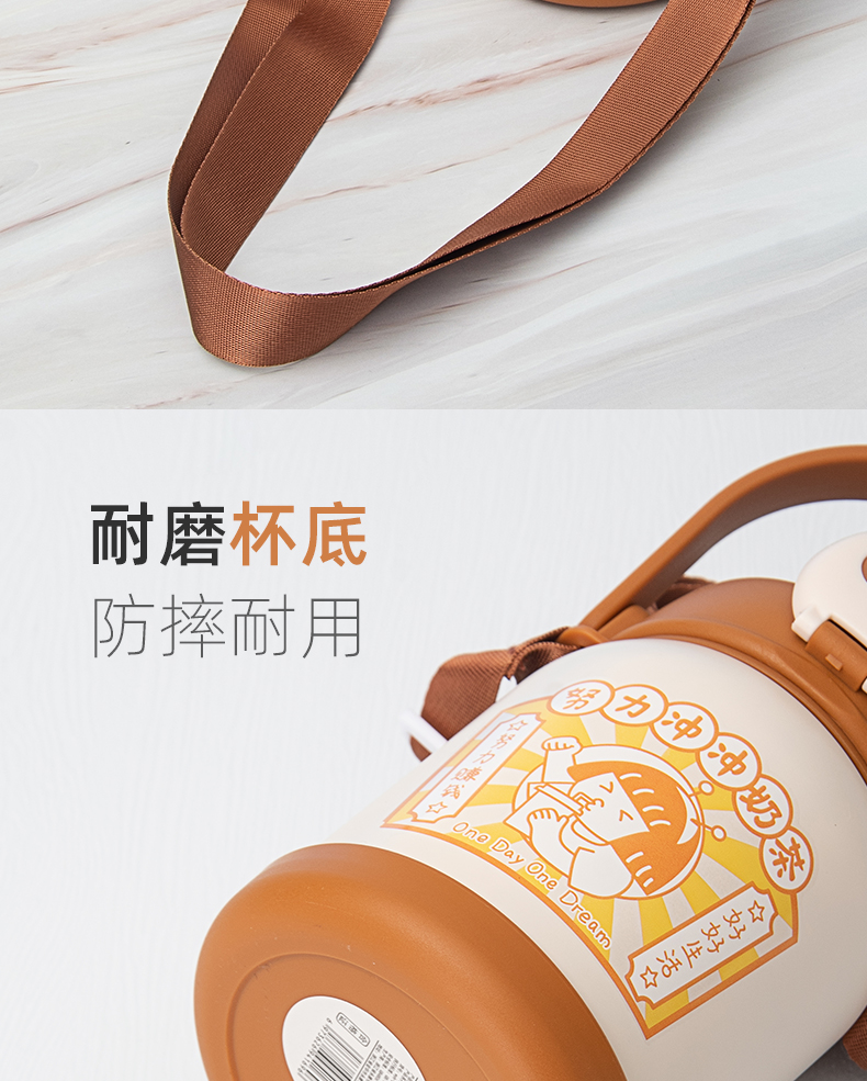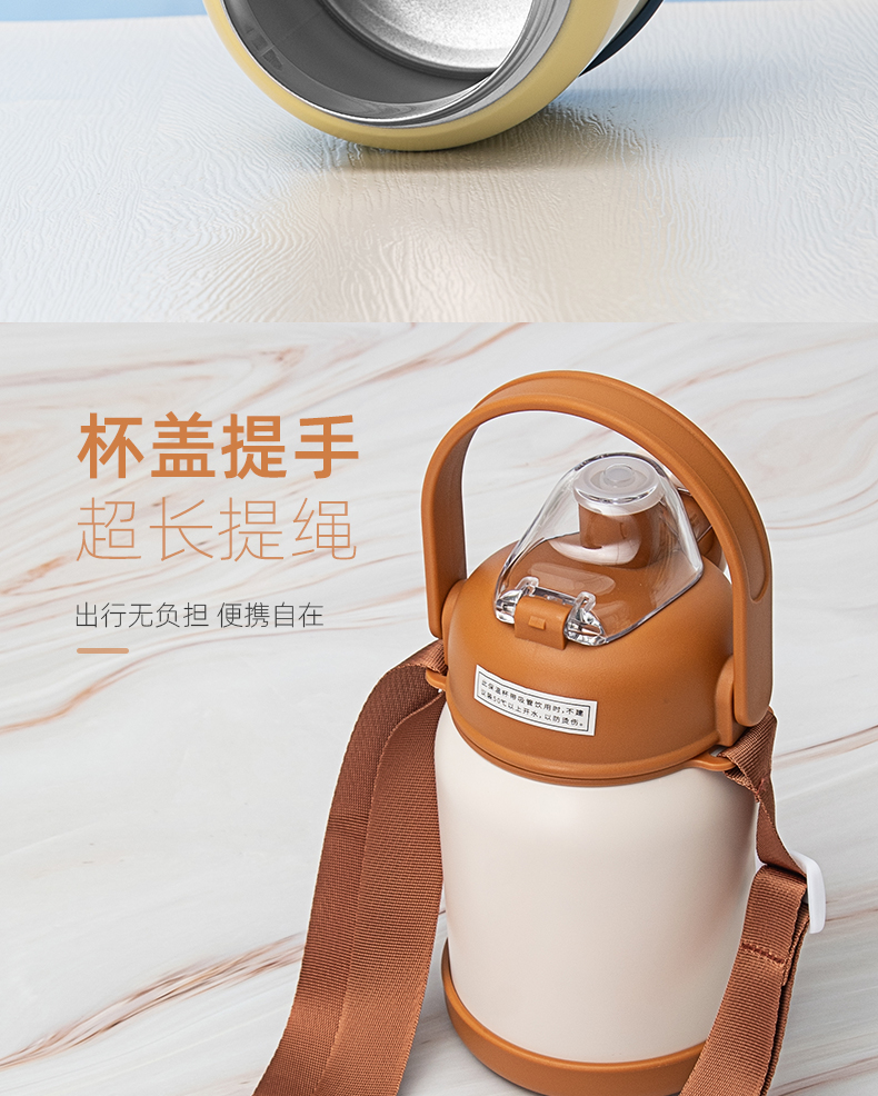 1000ML时尚小披风大肚保温杯316不锈钢可斜挎水杯
