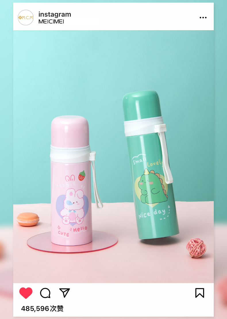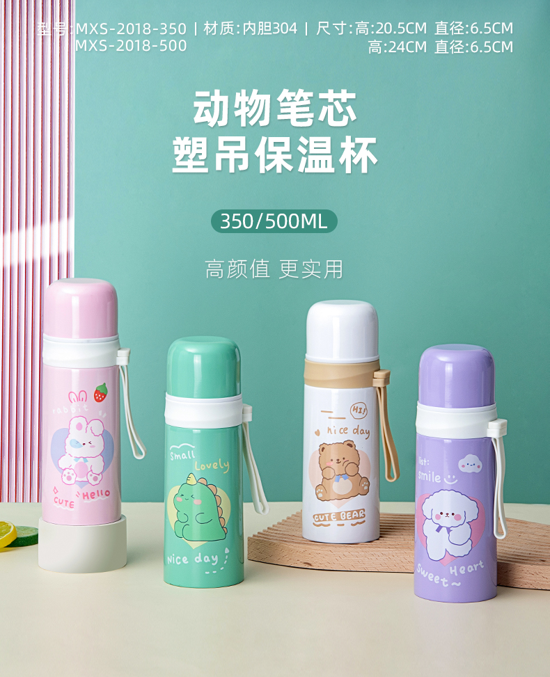 350ML元气物语塑吊保温杯304不锈钢可爱小清新水杯