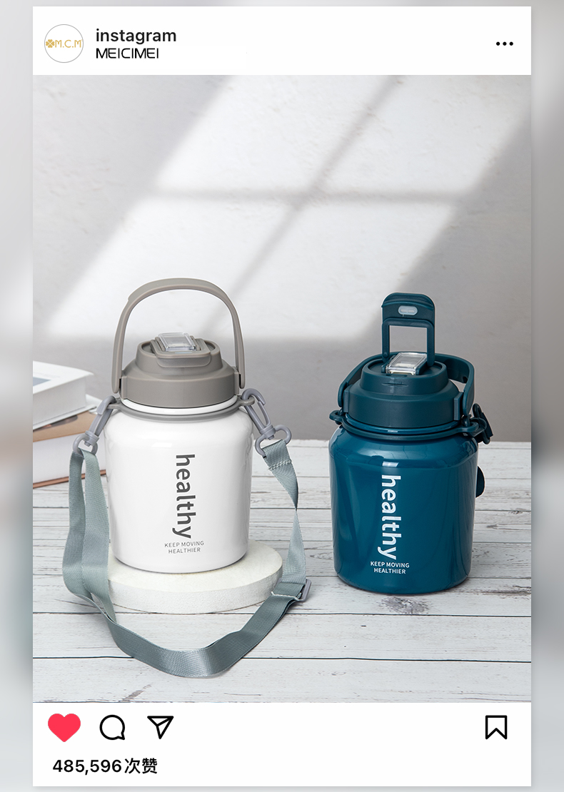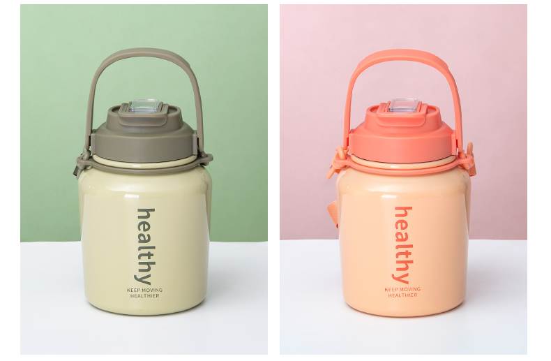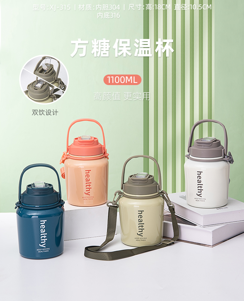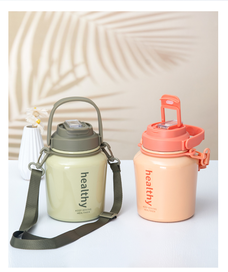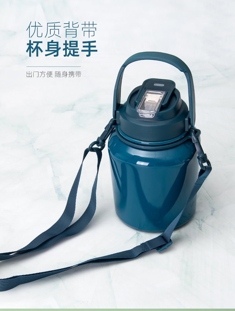 980ML背带款提手瘦腰保温杯大容量304不锈钢便携水杯