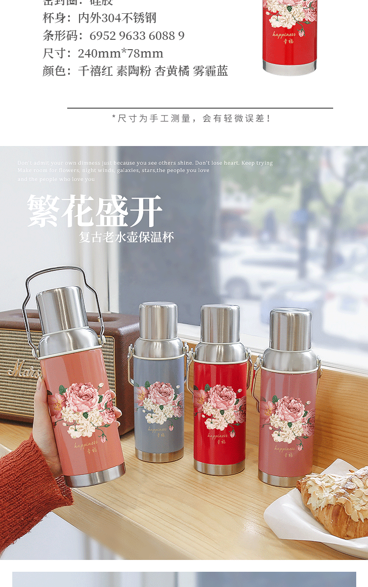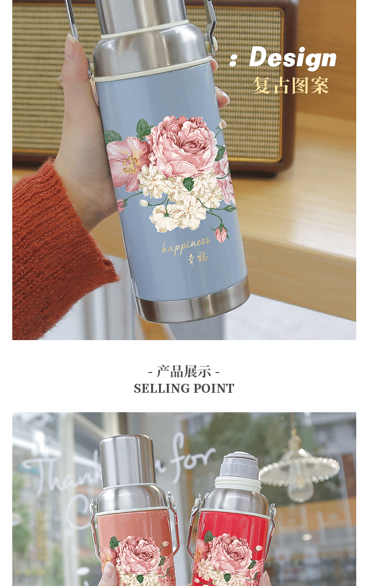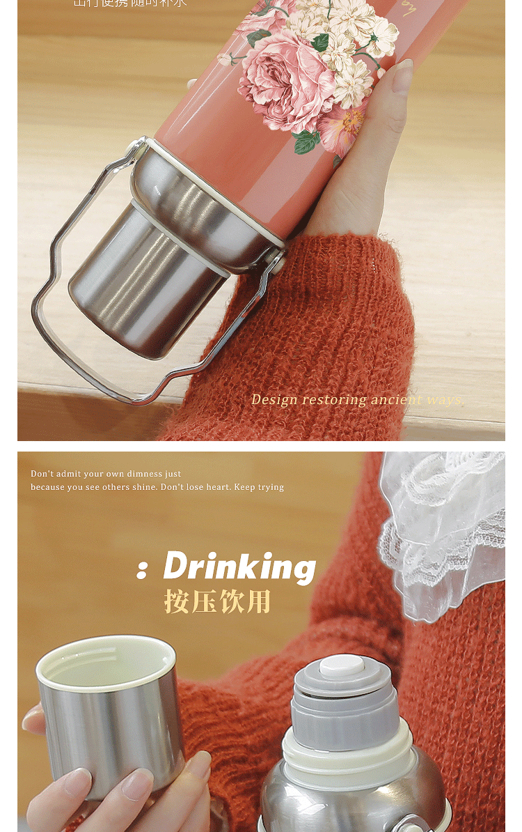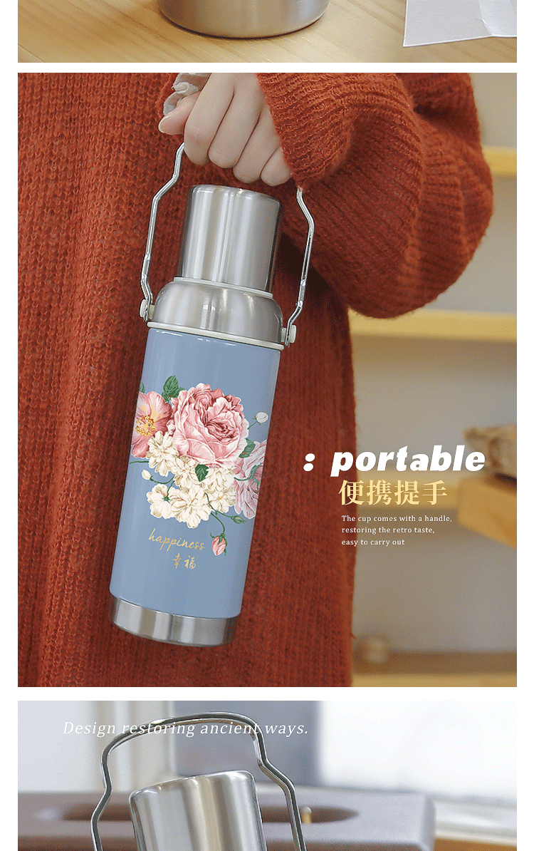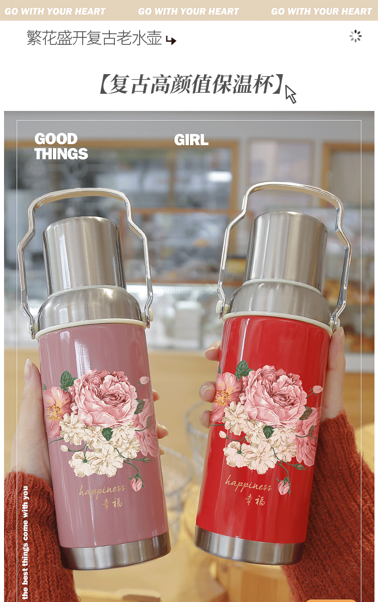 600ML大发复古老水壶保温杯304不锈钢个性潮流水杯