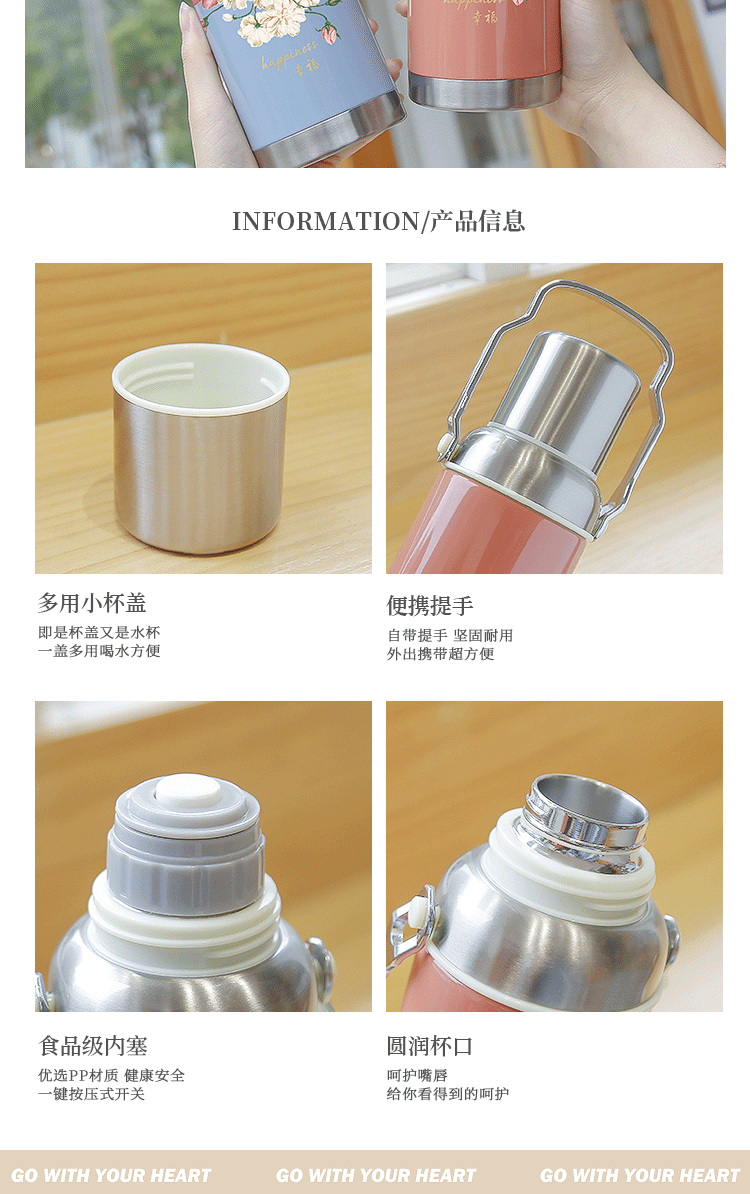 600ML卡通小萌兔小天使保温杯316不锈钢一杯两盖水杯
