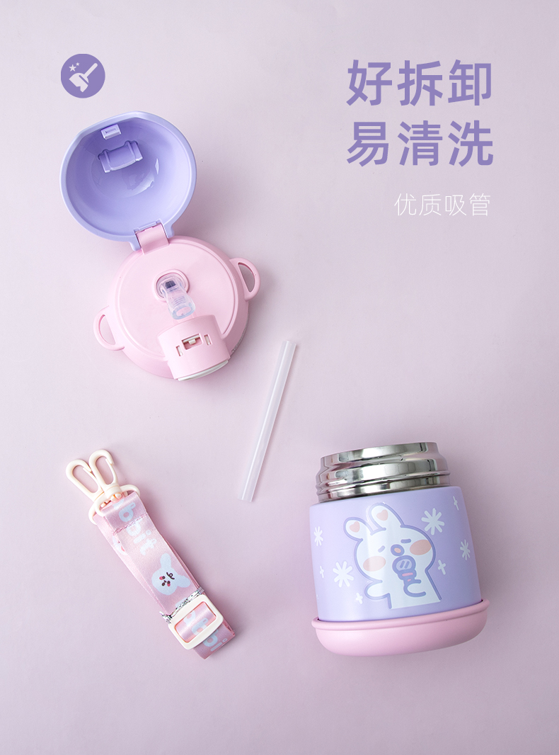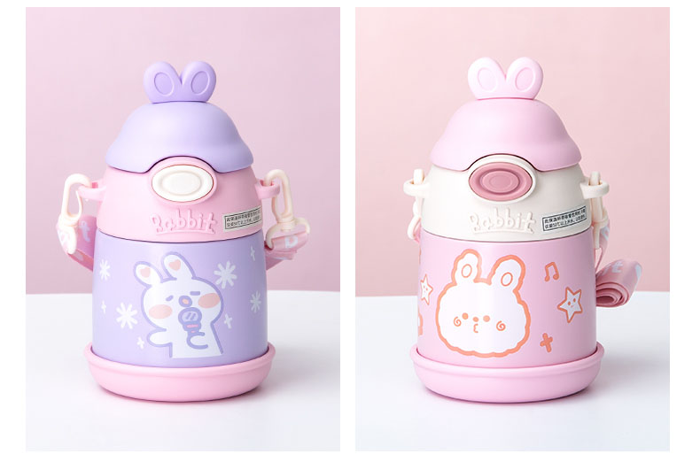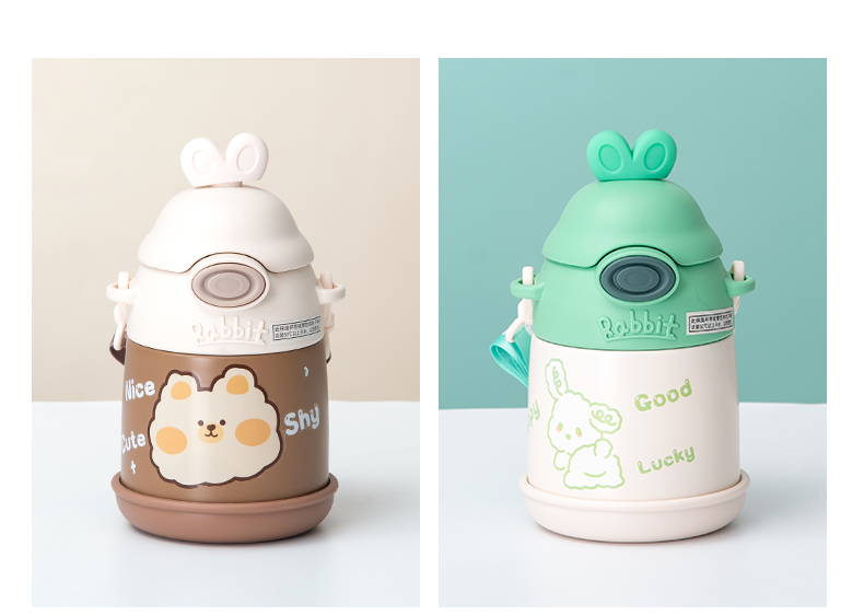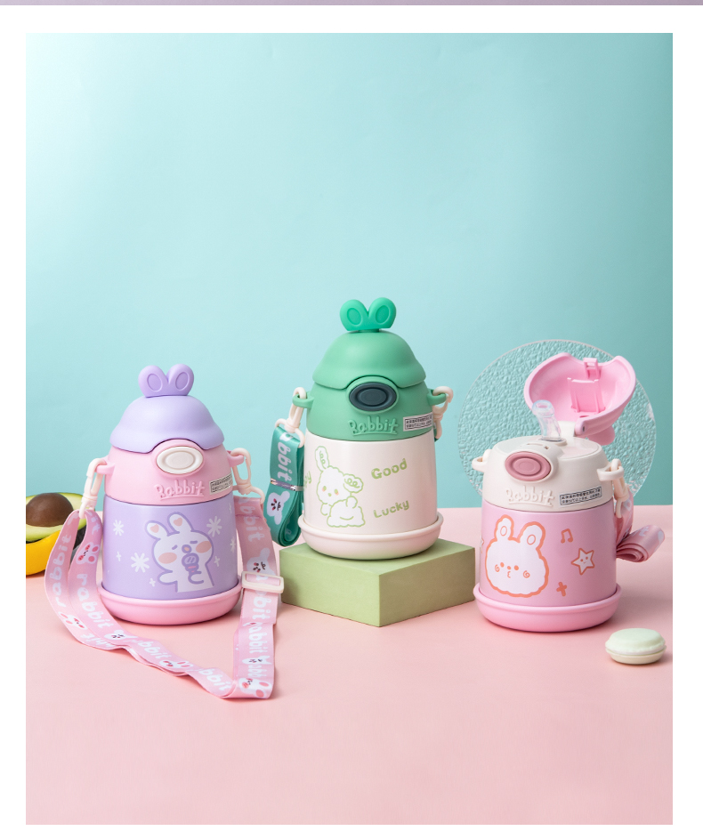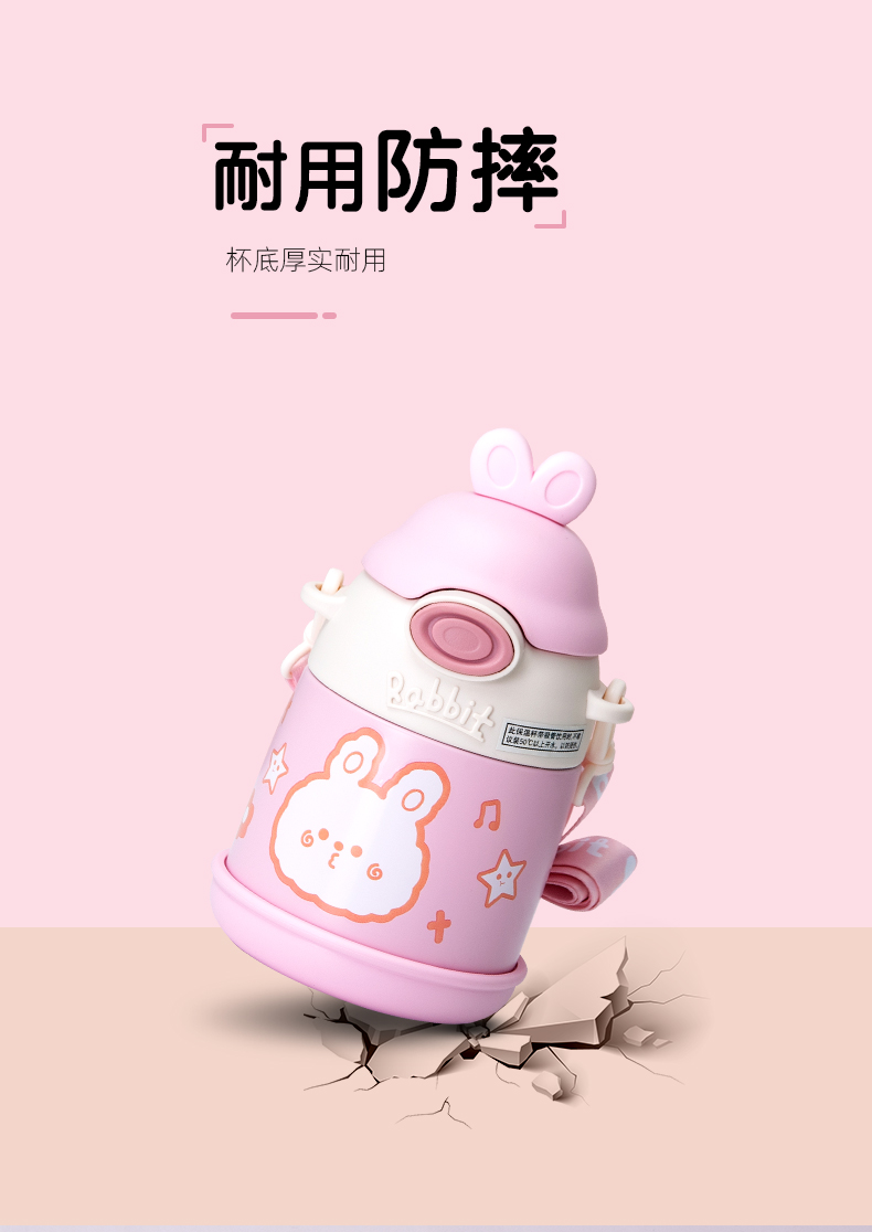 500ML卡通小萌兔玩偶小童保温杯316不锈钢可爱吸管杯
