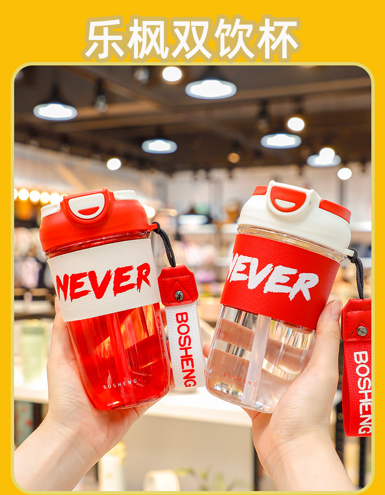 480ML谜森双饮塑料杯ins风高颜值夏季办公室水杯