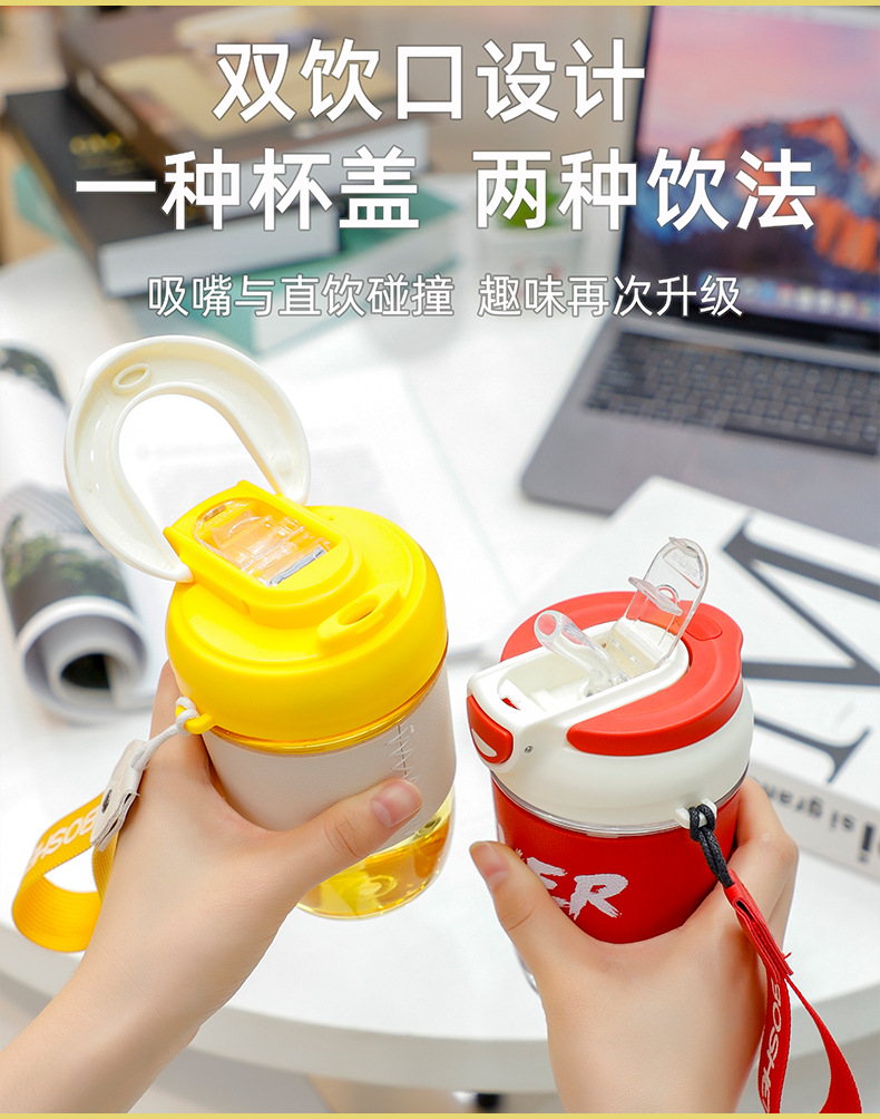 儿童水杯女生高颜值吸管便携塑料男生运动杯子2023新款夏天水壶瓶