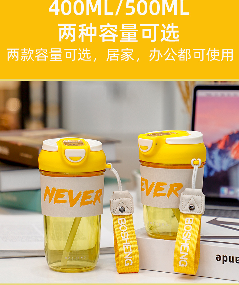 500ML亿本悦色太空杯创意手提绳便携带塑料杯