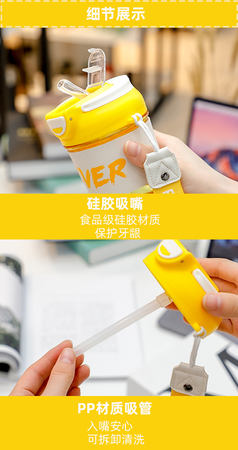 样品星兔创意卡通水杯儿童弹跳吸管杯可爱运动户外背带学生塑料杯