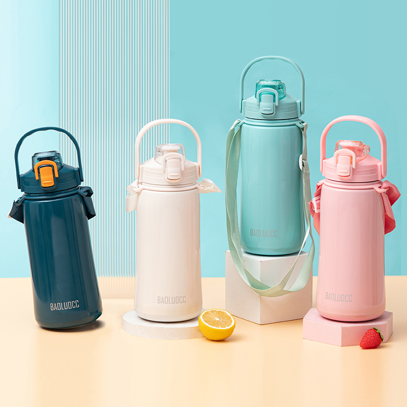 1380ML背带款提手瘦腰保温杯大容量304不锈钢便携水杯