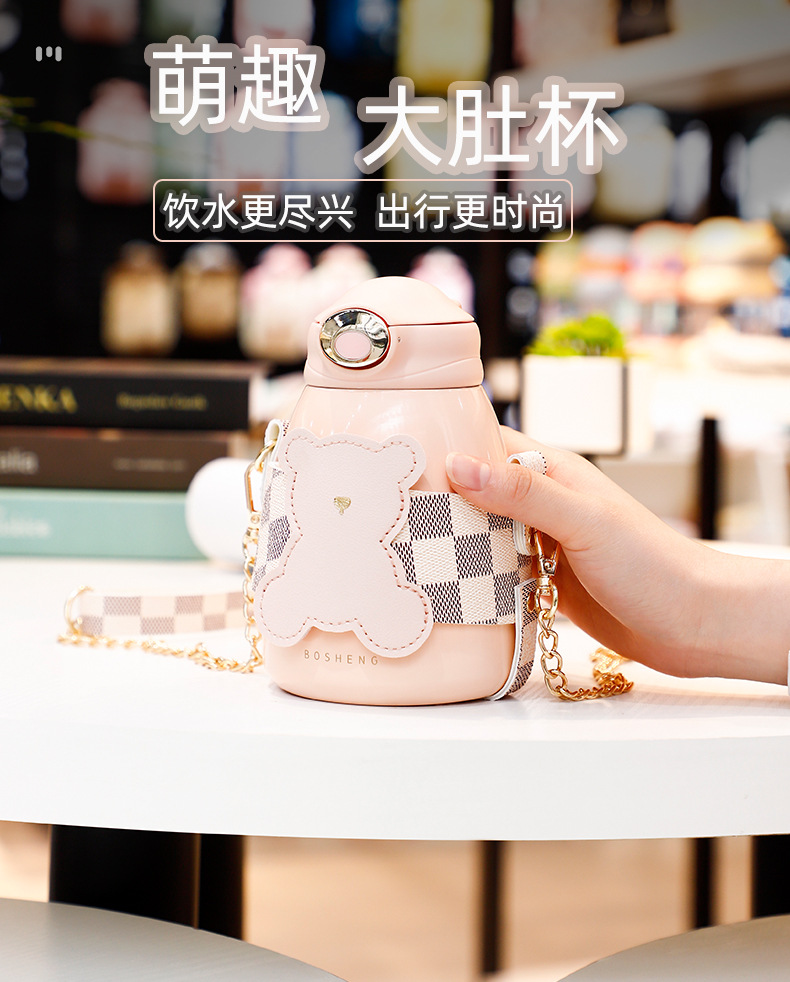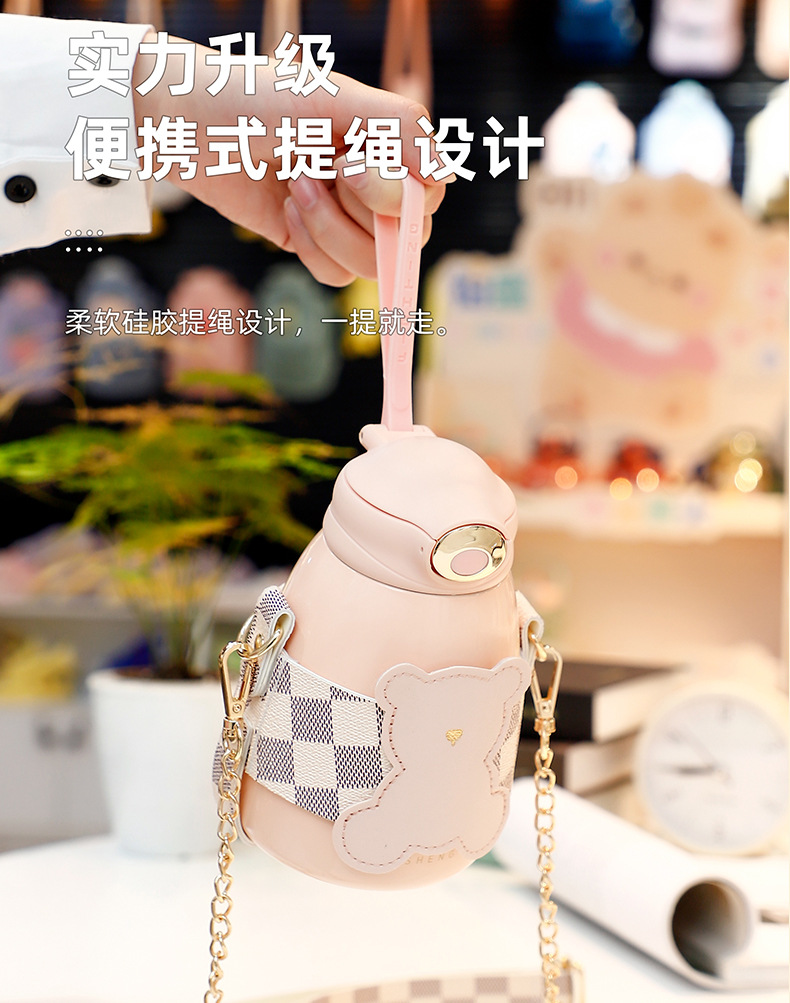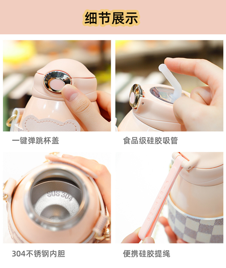1000ML可爱卡通童真熊保温杯大容量高颜值吸管杯