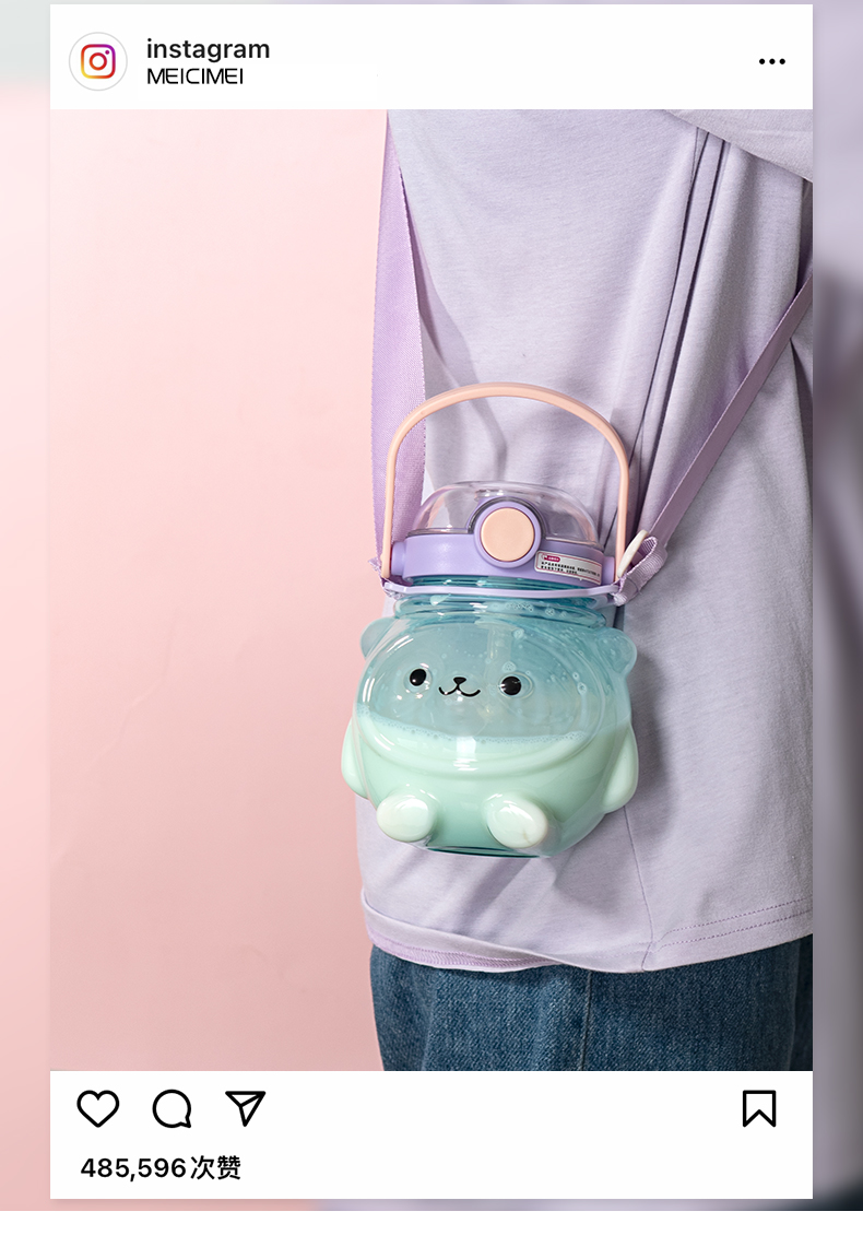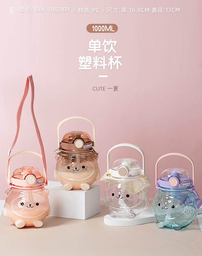 1000ML二代水杯卡通可爱双饮塑料杯(彩盒)