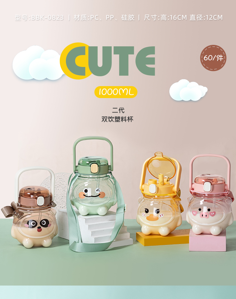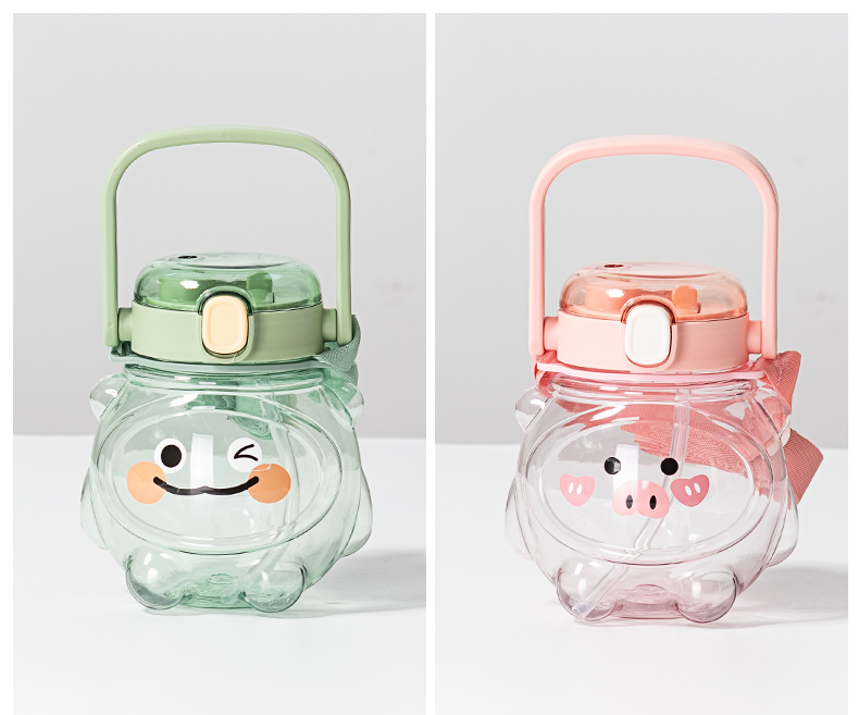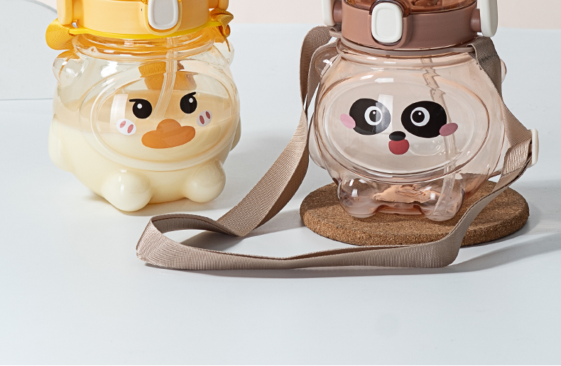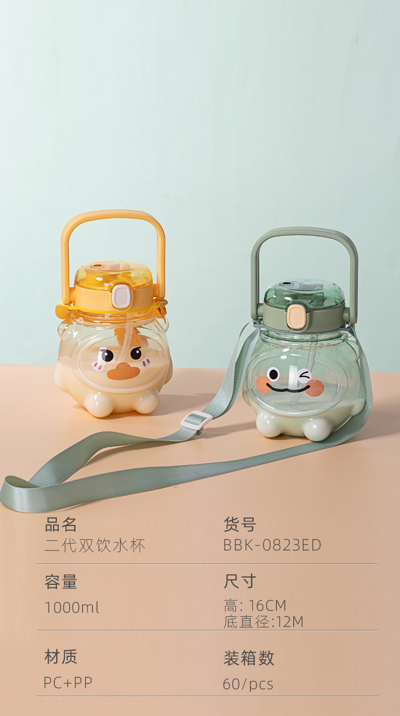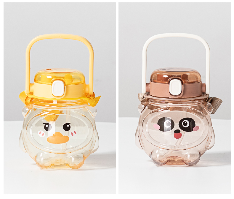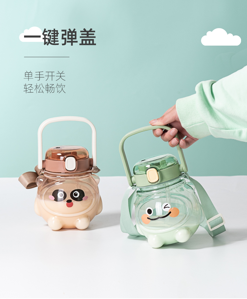 样品星兔创意卡通水杯儿童弹跳吸管杯可爱运动户外背带学生塑料杯