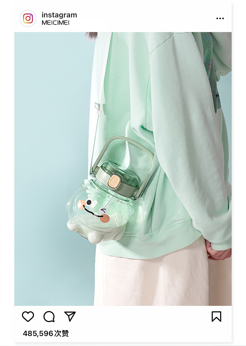 500ML亿本悦色太空杯创意手提绳便携带塑料杯