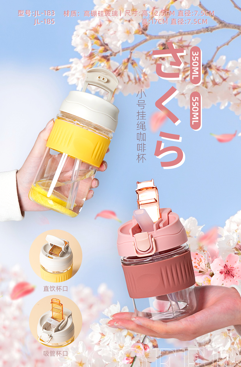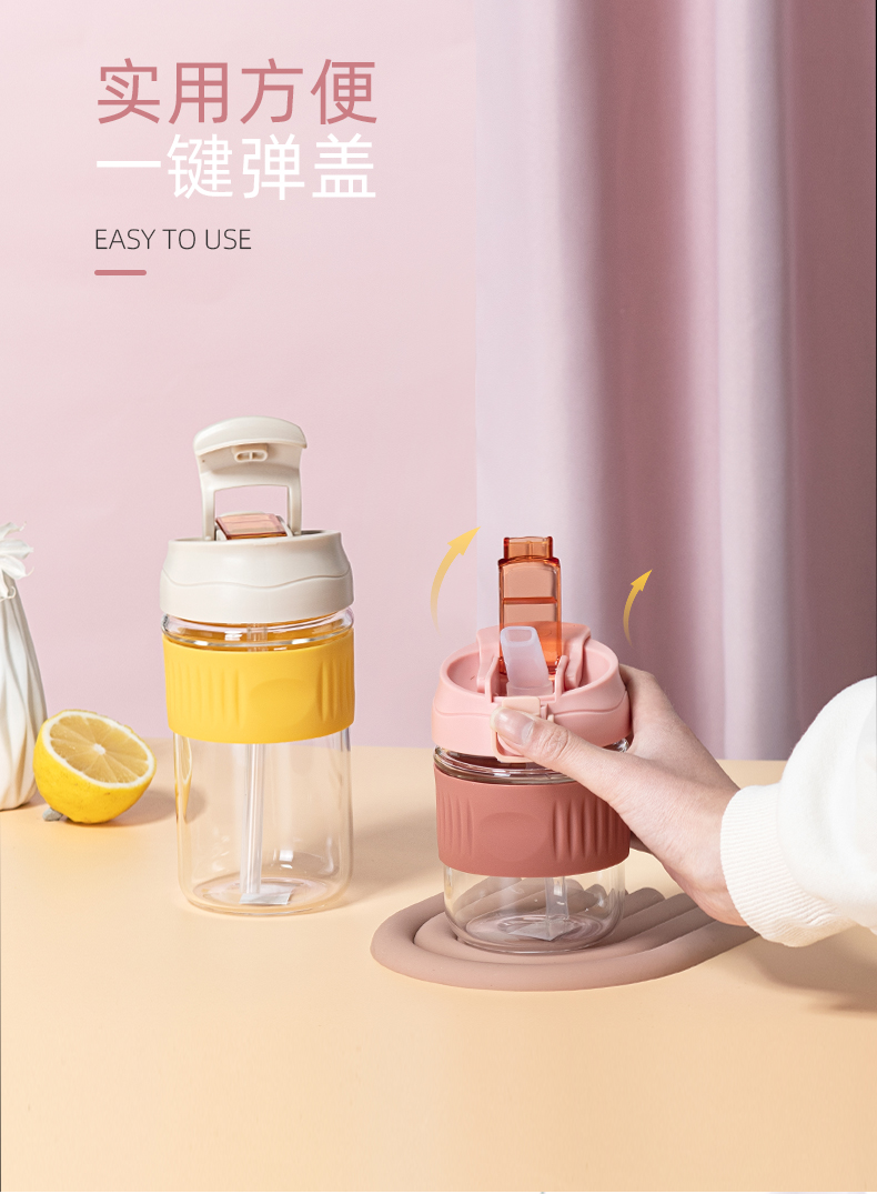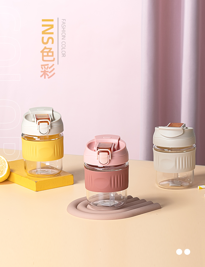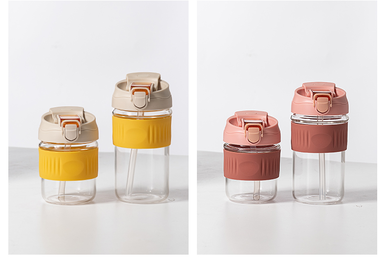 可爱迷你便携儿童玻璃吸管杯男女学生早餐牛奶茶杯大肚礼品杯印字