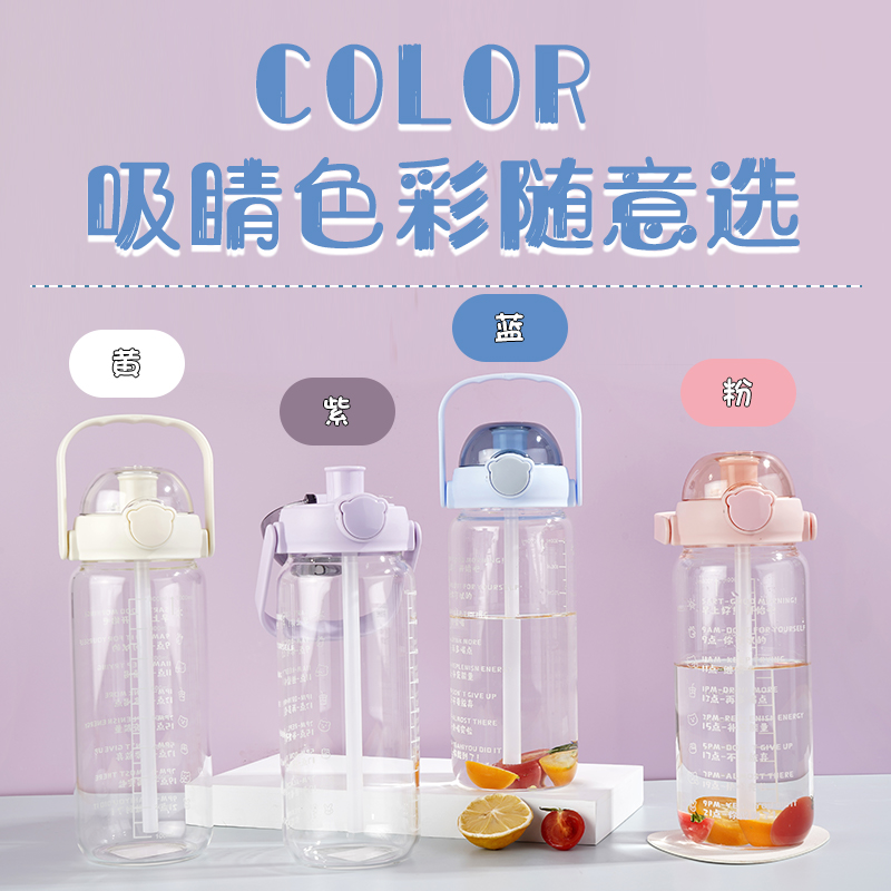 儿童吸管水杯夏天大容量可爱杯子女生高颜值搅拌杯耐高温塑料水壶