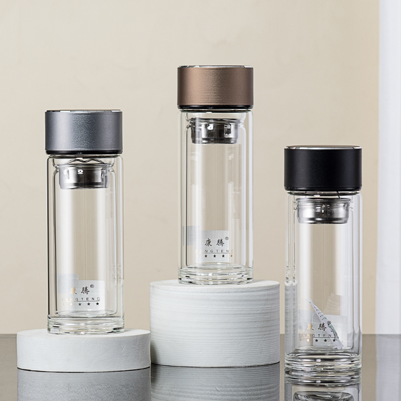 300ML简约商务玻璃杯男士双层泡茶水杯办公礼品杯子