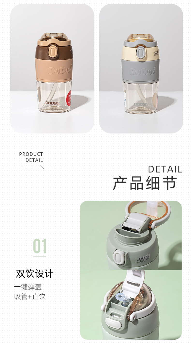 640ML麦琪多用杯套款塑料杯时尚便携双饮吸管杯(彩盒)