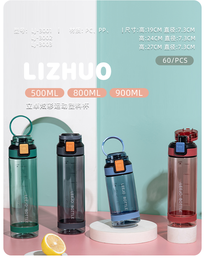 900ML立卓炫彩运动塑料杯简约透明太空杯(OPP袋)