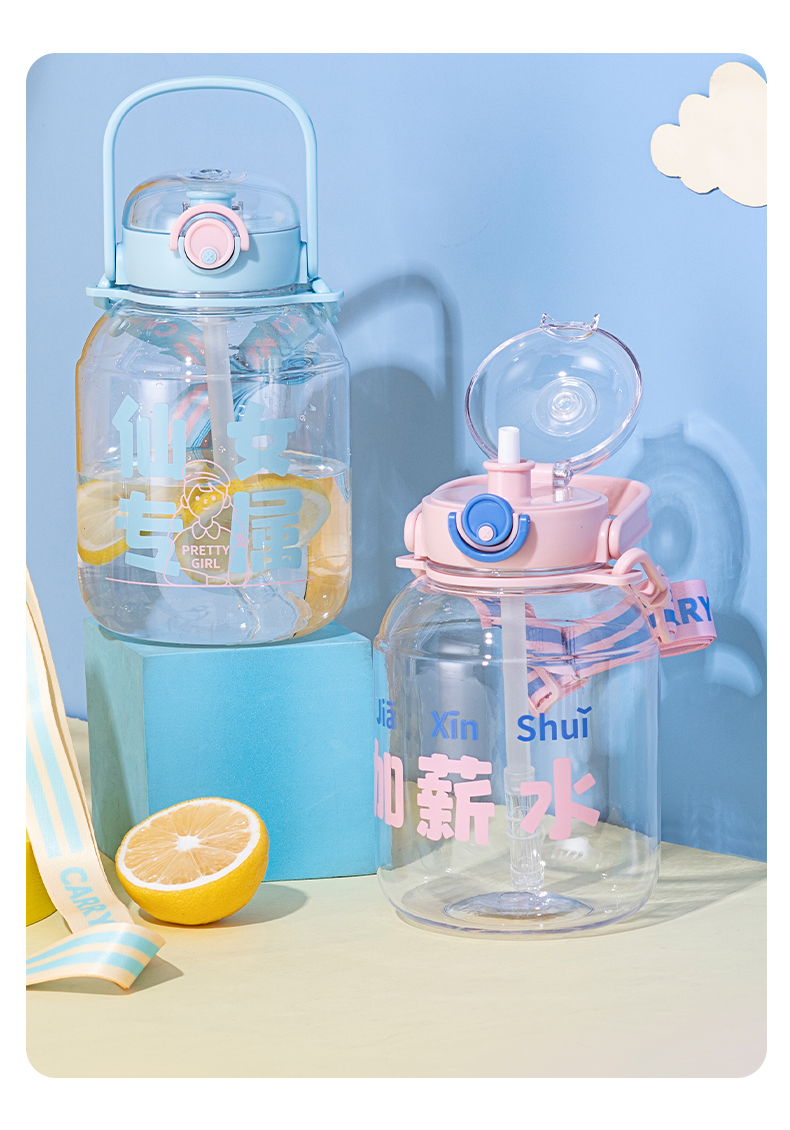 儿童吸管水杯夏天大容量可爱杯子女生高颜值搅拌杯耐高温塑料水壶