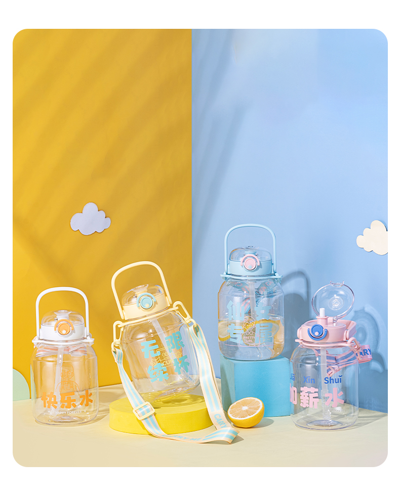 1300ML迷你吨吨塑料杯大容量弹跳盖吸管水杯(彩盒)