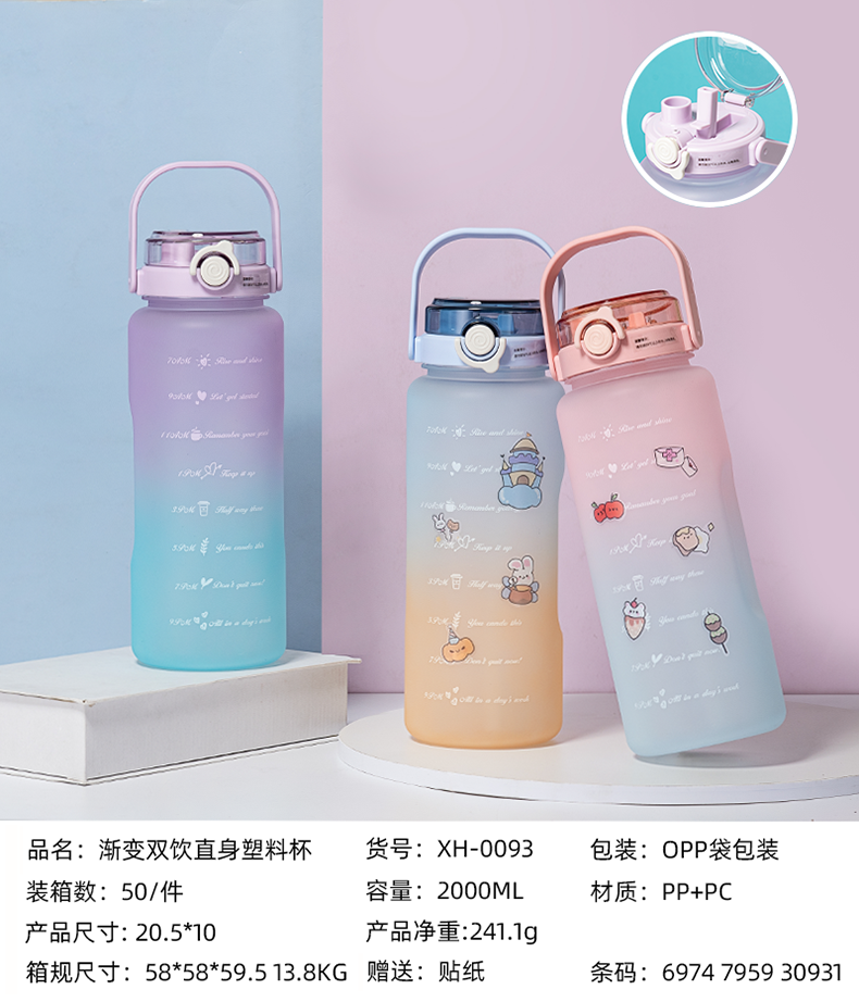 1500ML渐变双饮直身塑料杯(OPP袋)