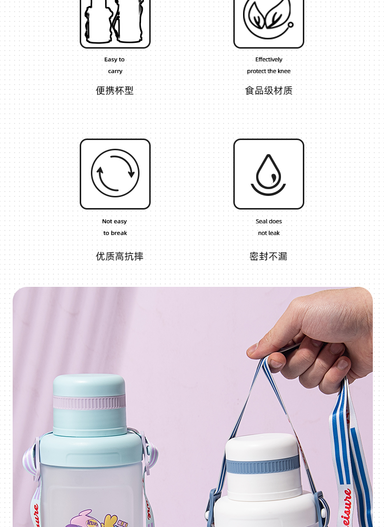 500ML亿本悦色太空杯创意手提绳便携带塑料杯