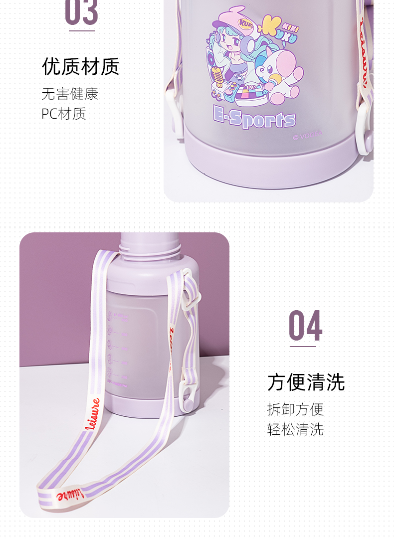 新大容量卡通塑料杯儿童弹盖吸管杯户外随手杯可爱防烫饮水杯水壶
