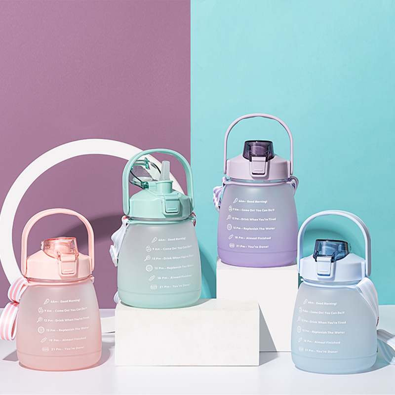 1300ML绚丽渐变色吸管塑料杯大容量户外运动旅行水壶