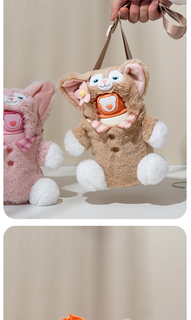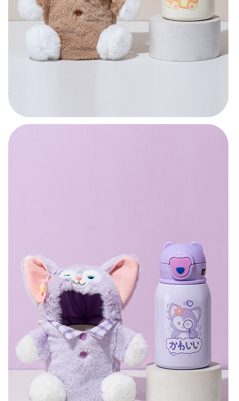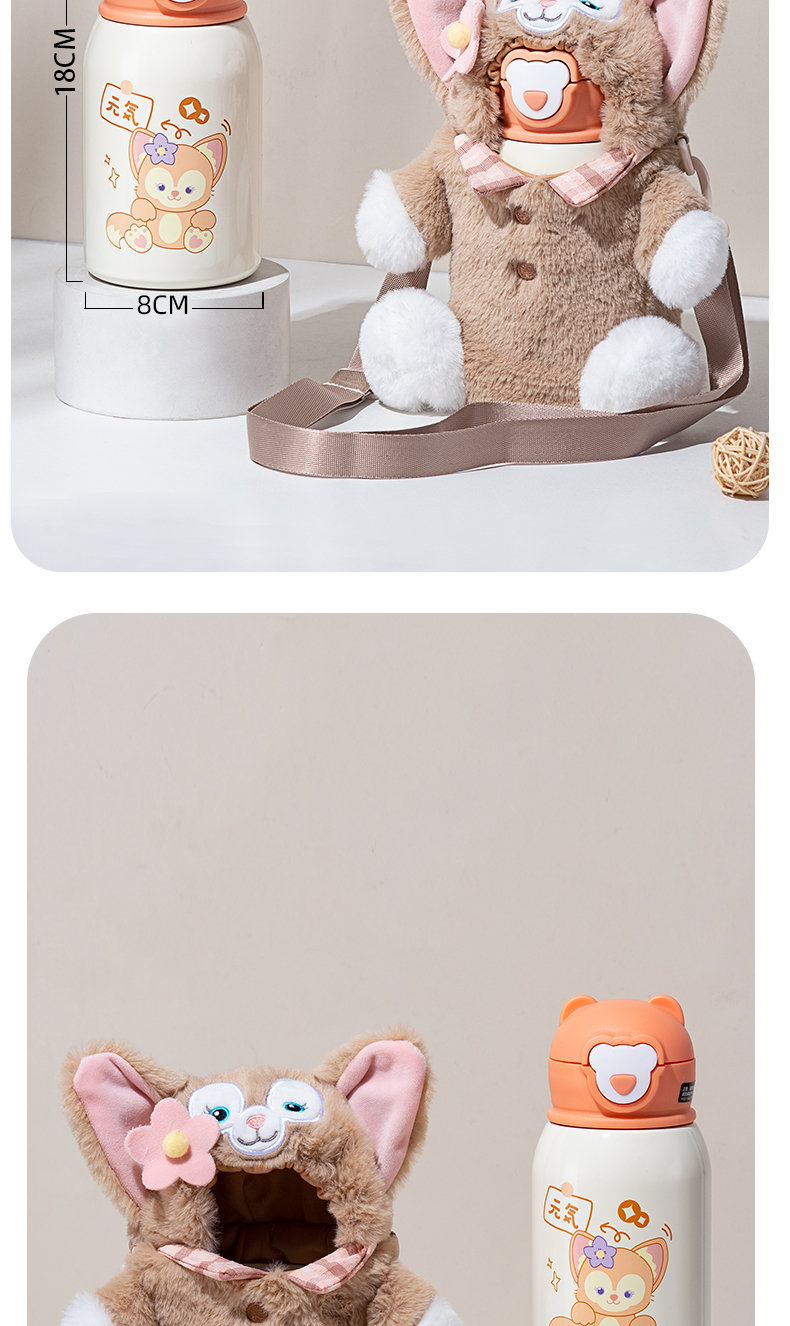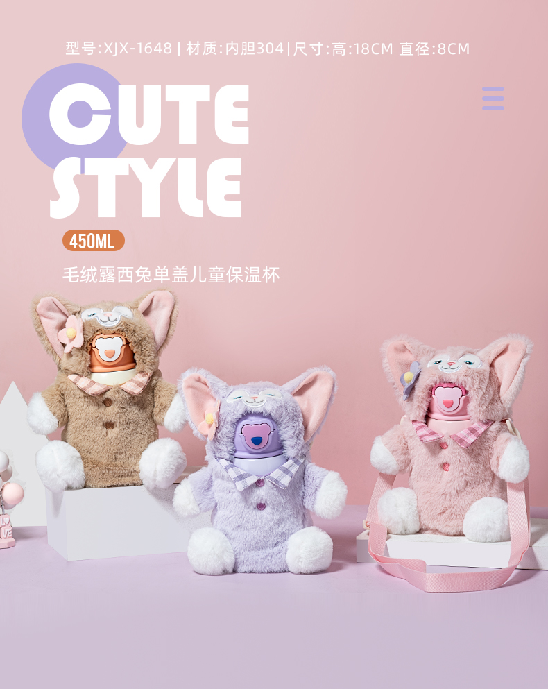 500ML卡通毛绒玩偶儿童保温杯316不锈钢一杯两盖水杯