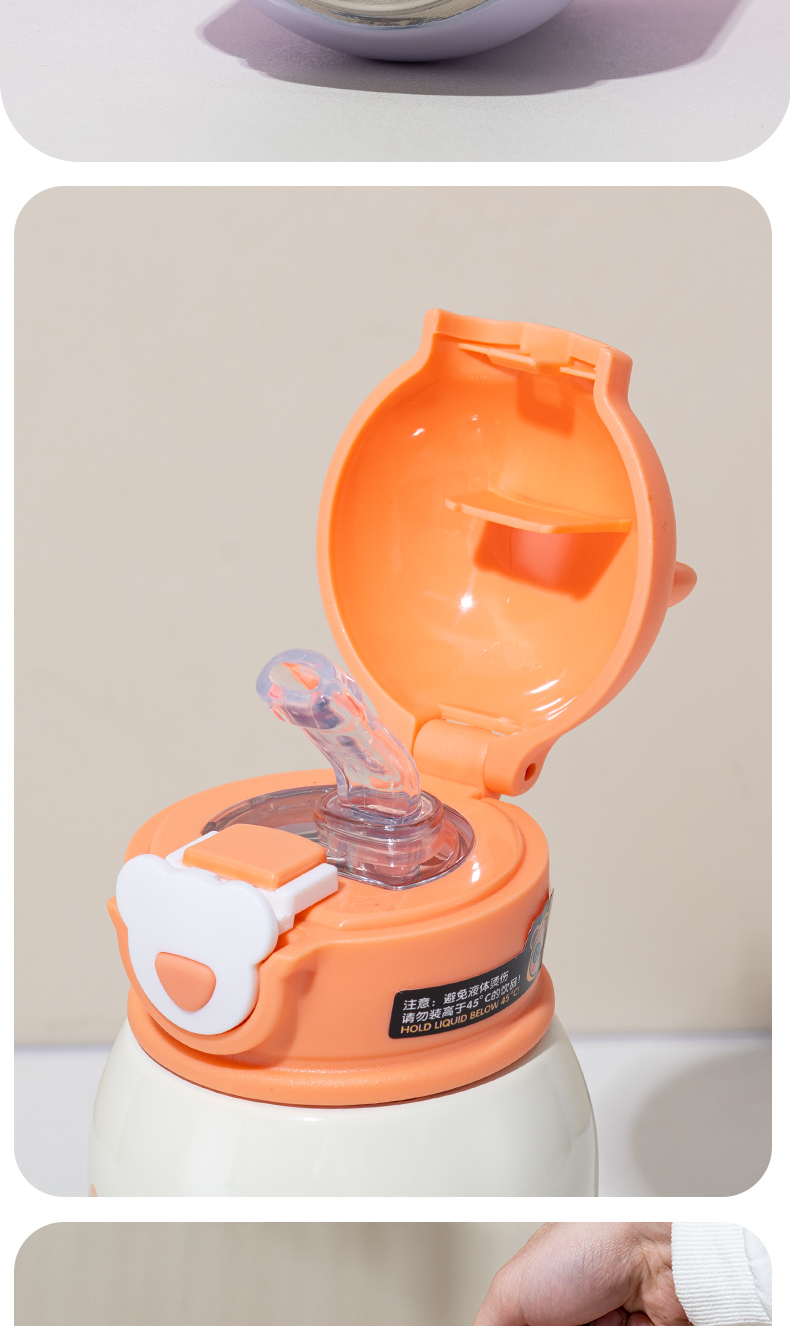 450ML卫衣小熊单盖儿童保温杯316不锈钢可爱吸管杯