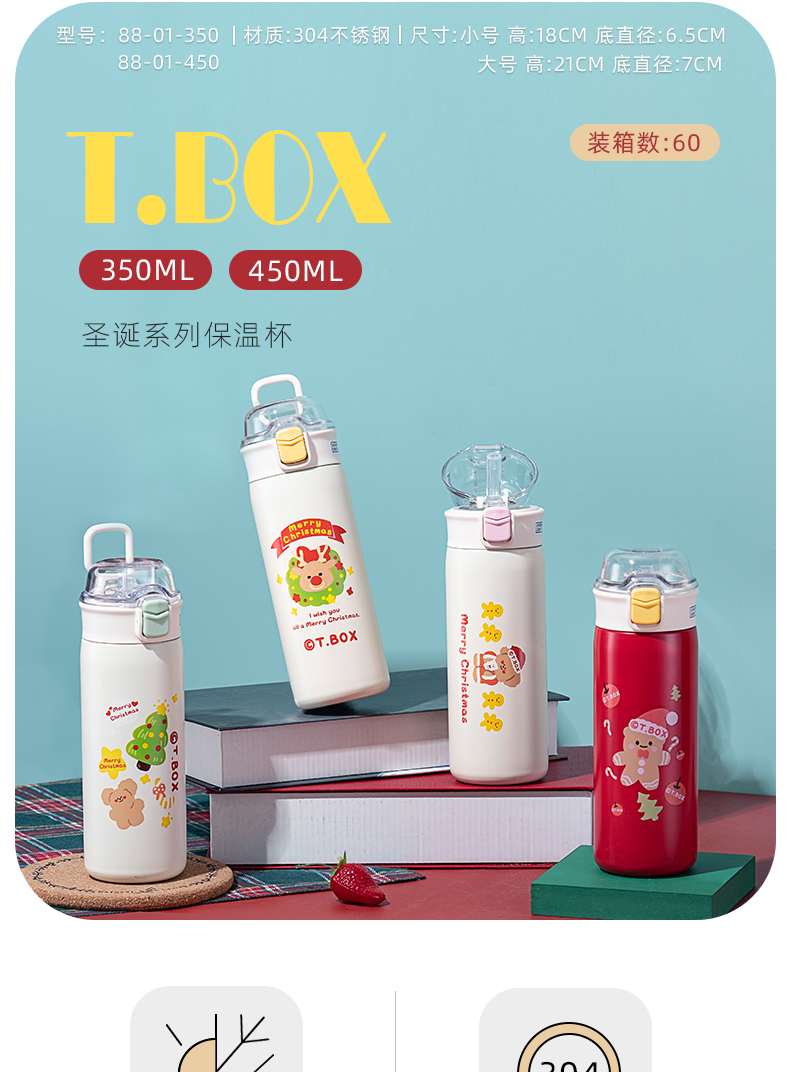 550ML幸运颜色公仔方扣保温杯304不锈钢可爱吸管杯