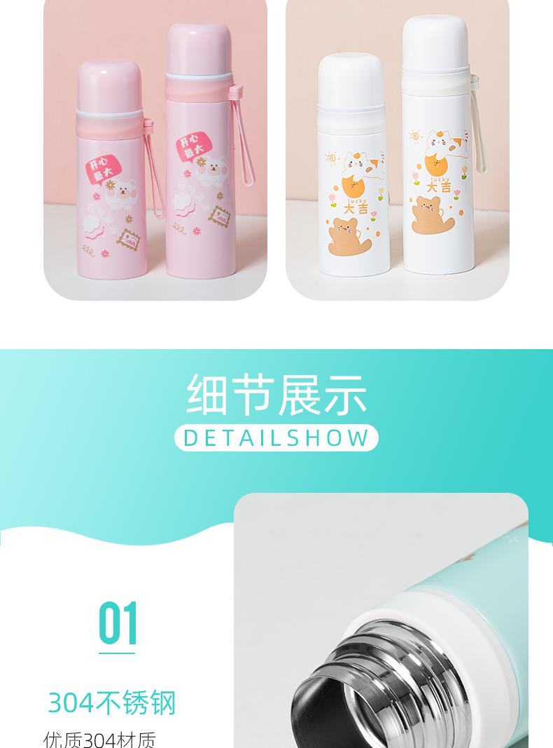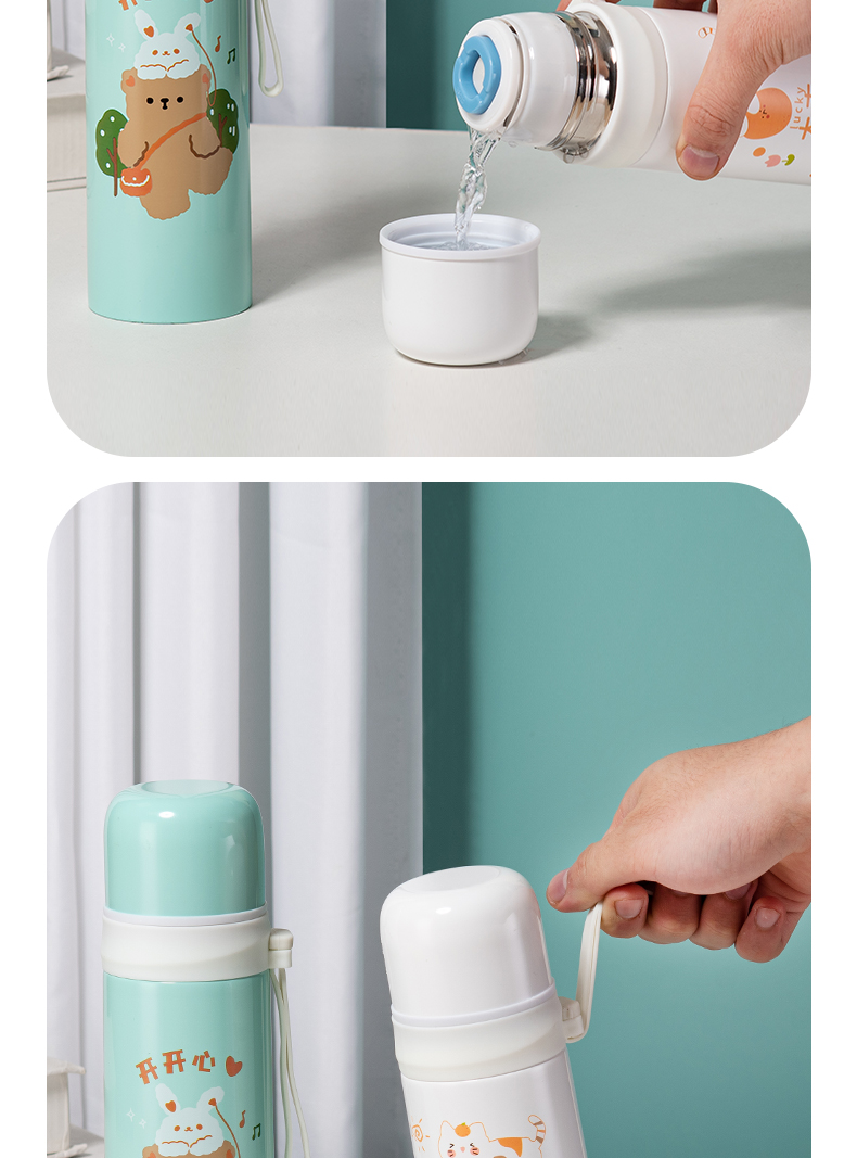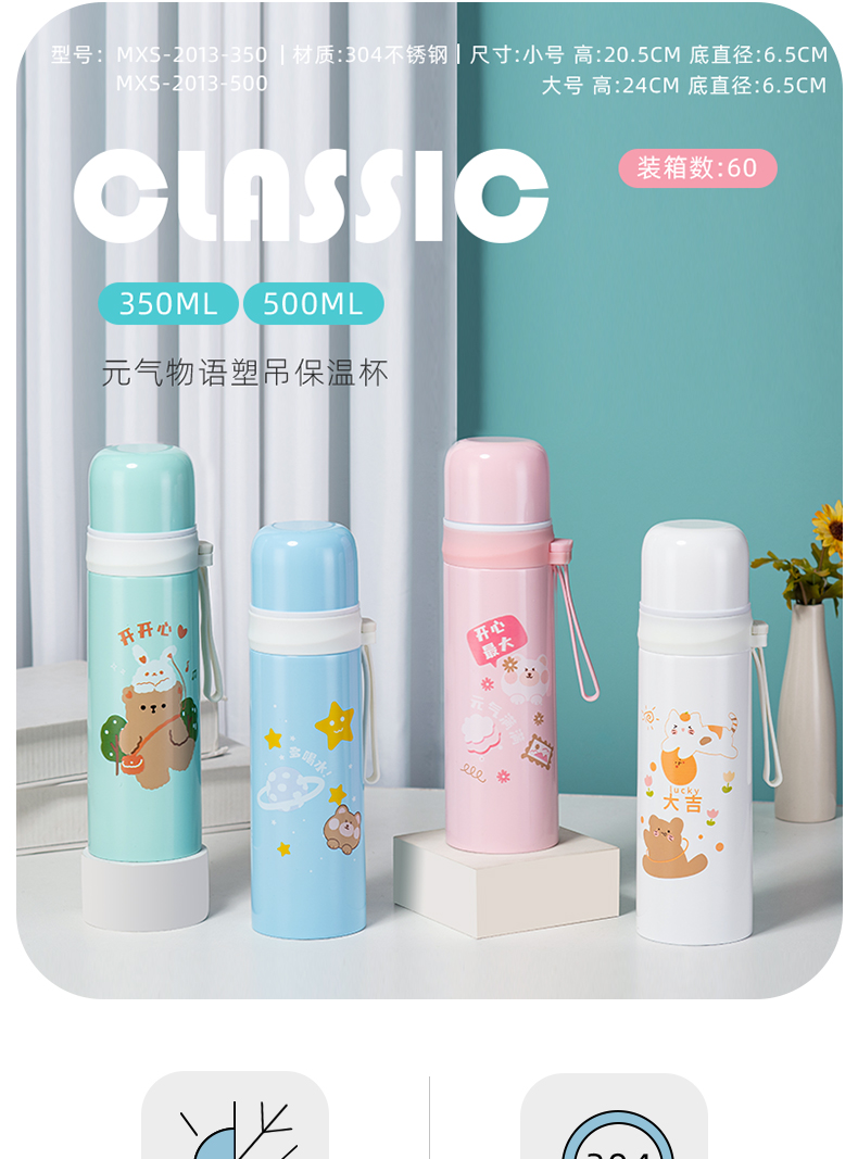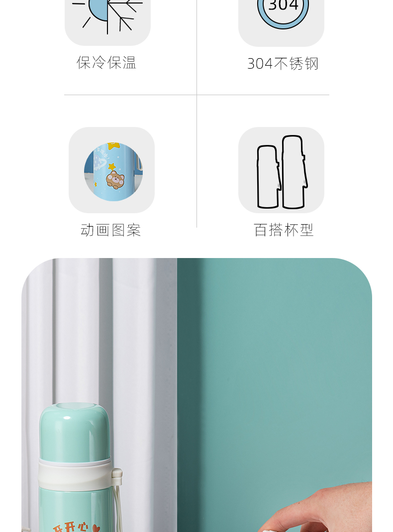 350ML动物涂鸦商务直身保温杯304不锈钢小清新水杯
