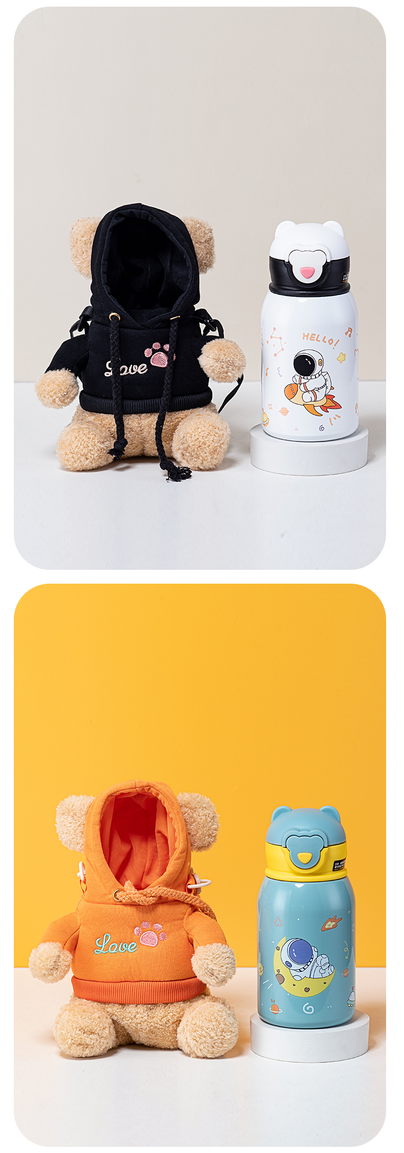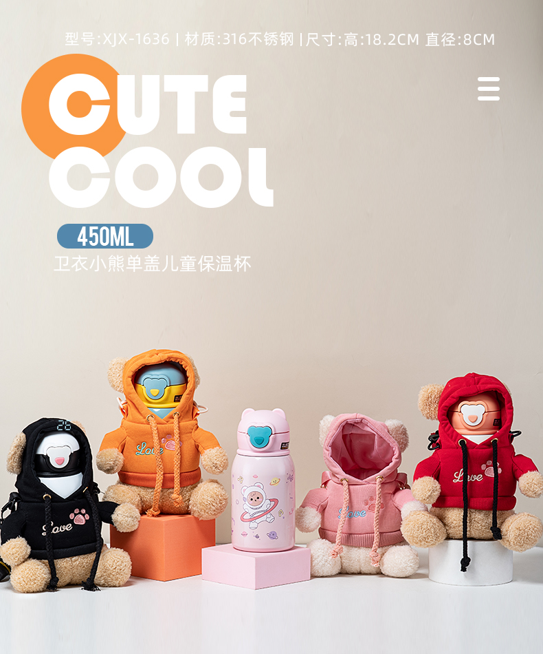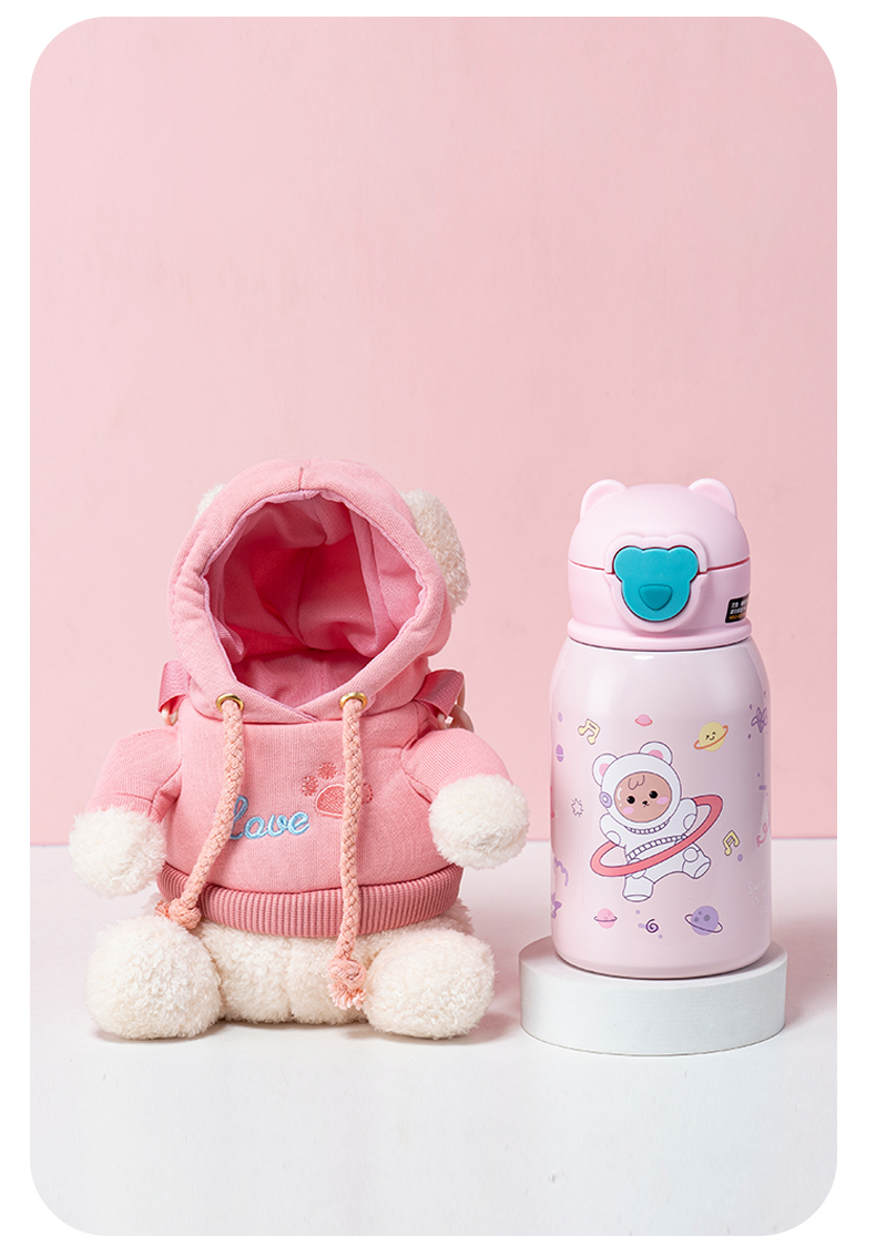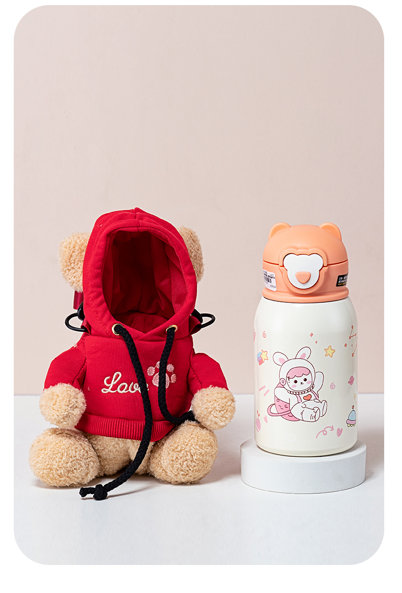 500ML卡通毛绒玩偶儿童保温杯316不锈钢一杯两盖水杯
