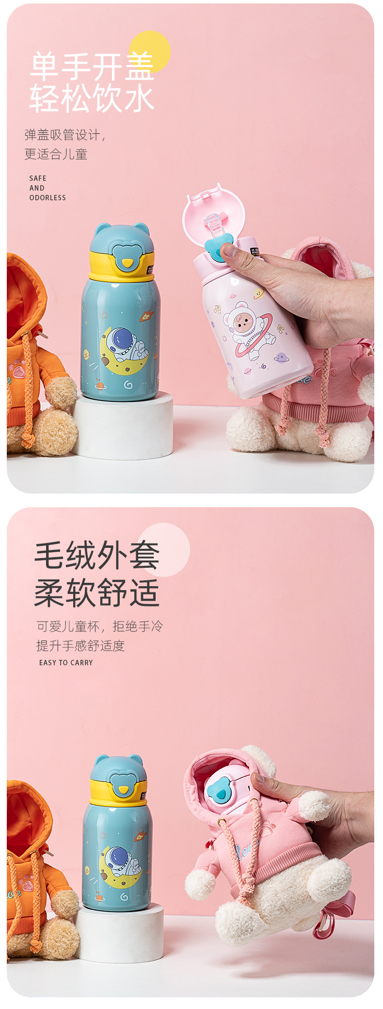 780ML卡通抱抱动物保温杯304不锈钢可爱吸管水杯