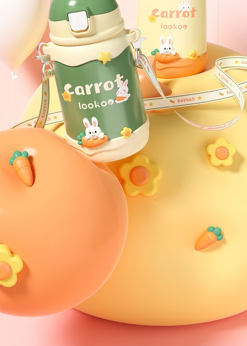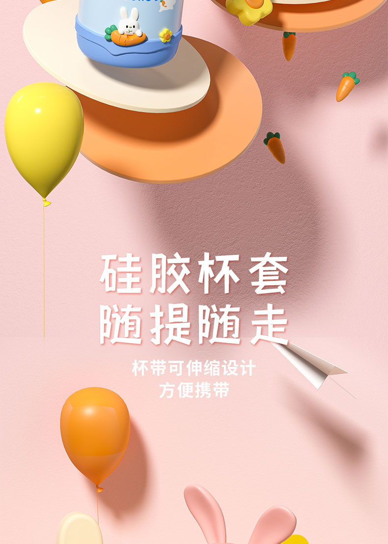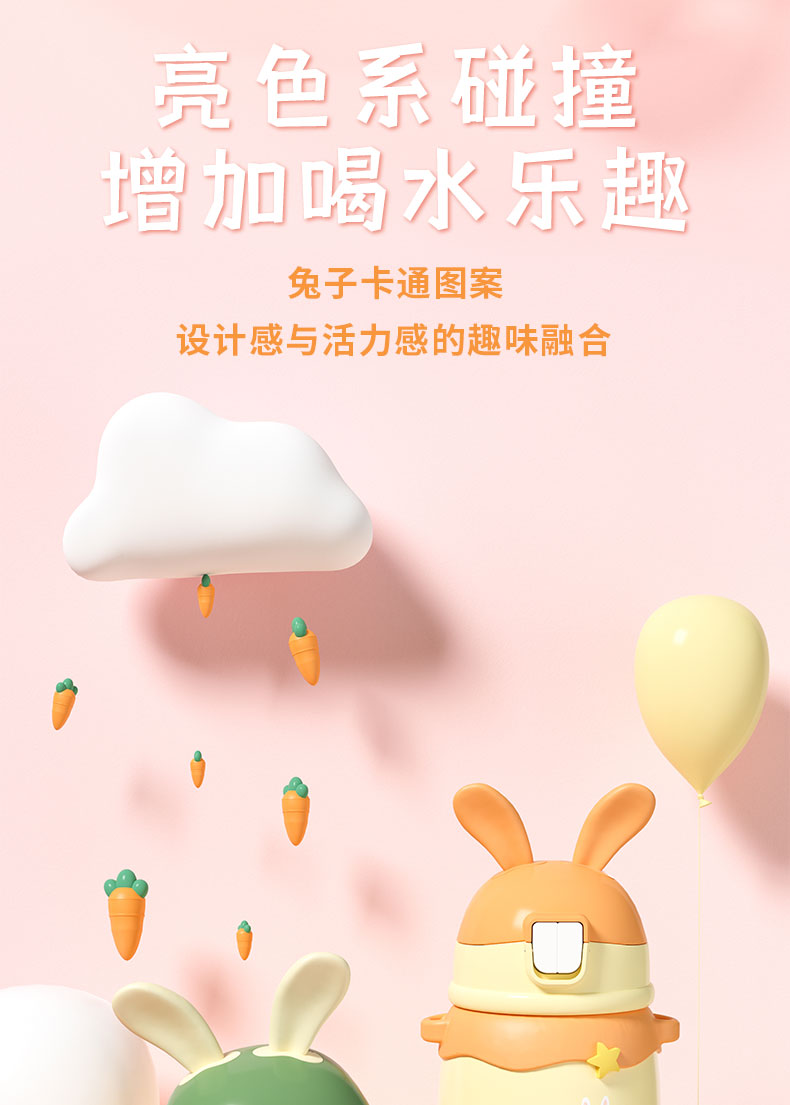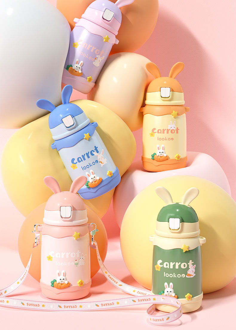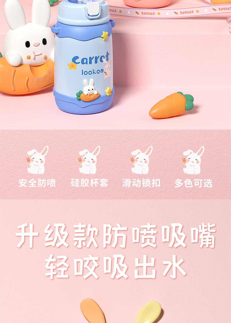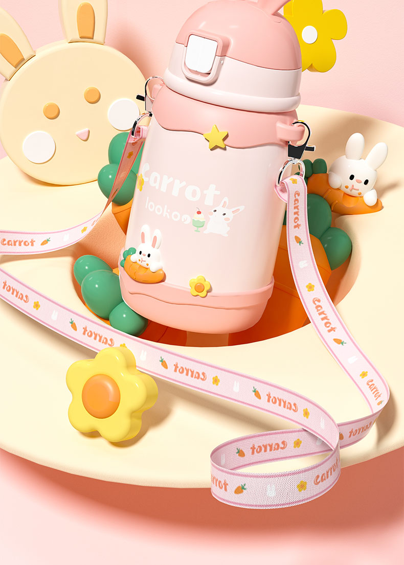 480ML卡通萌兔背带保温杯316不锈钢可爱吸管水杯子