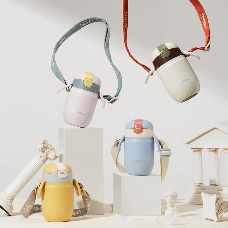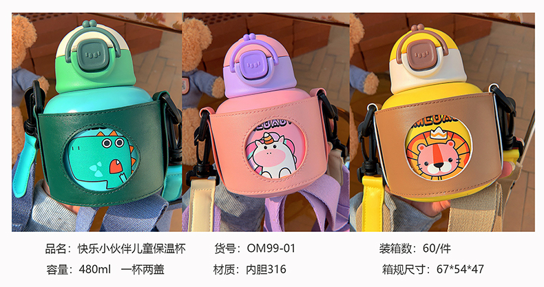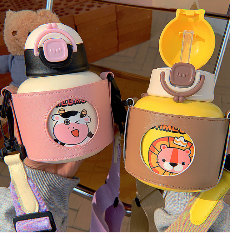 280ML萌趣背带吸管保温杯304不锈钢小巧弹跳盖水杯