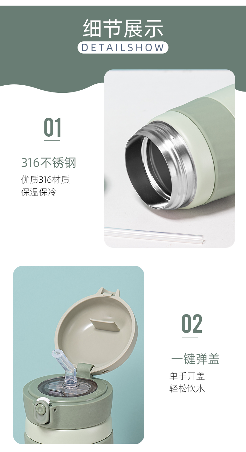360ML温显弹盖保温杯男女304不锈钢带茶漏商务礼品杯