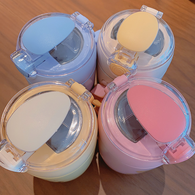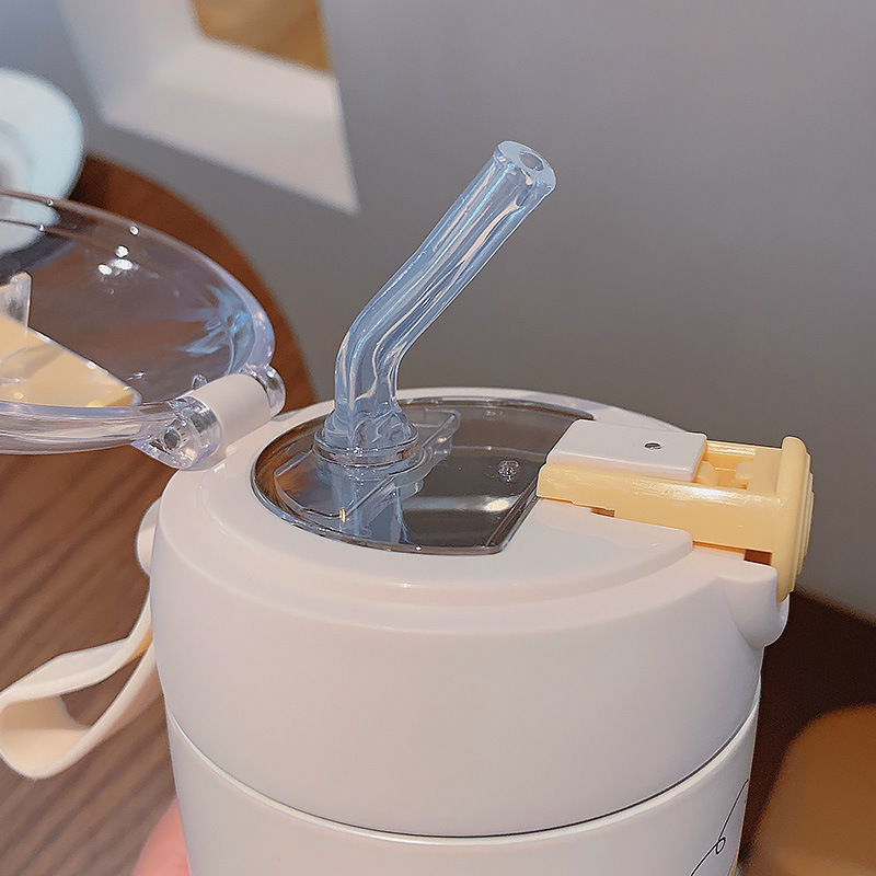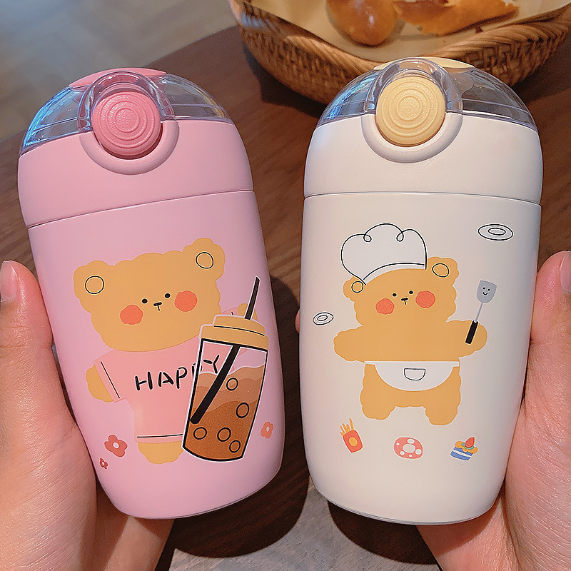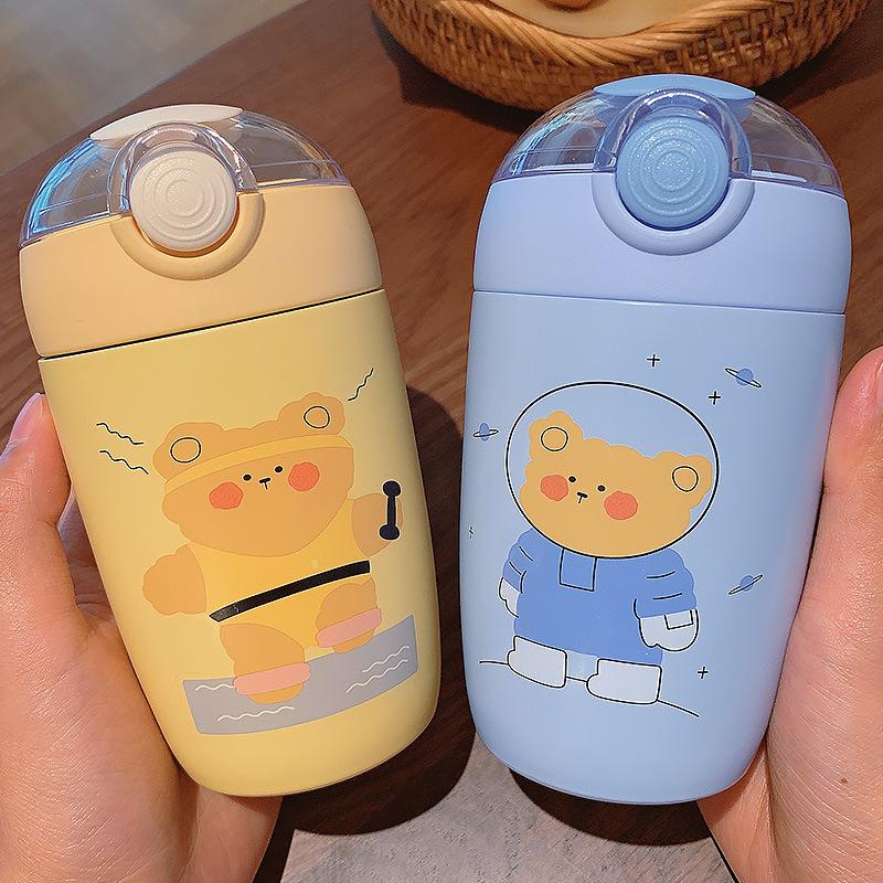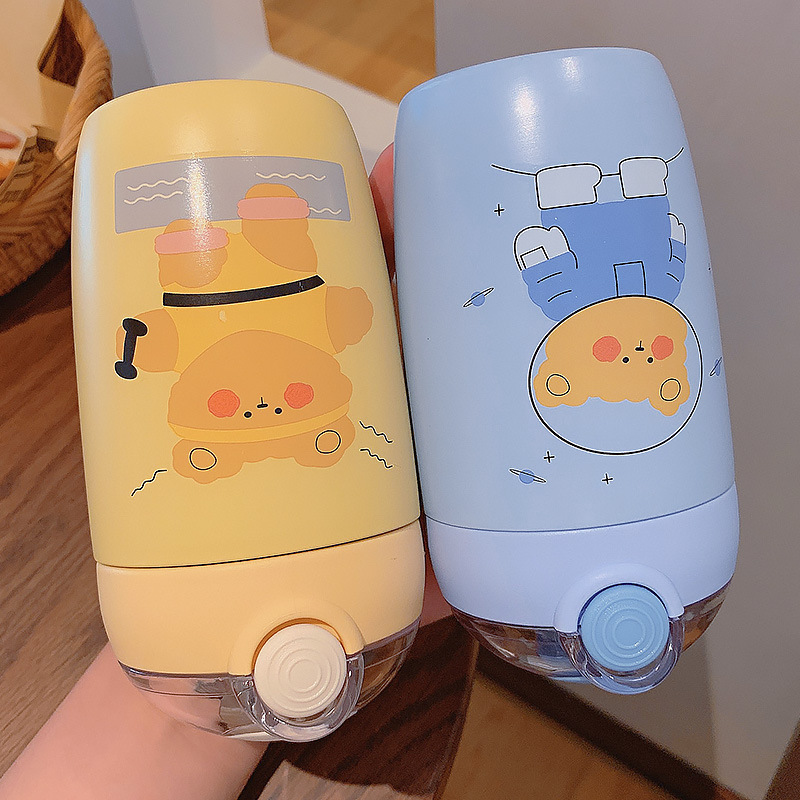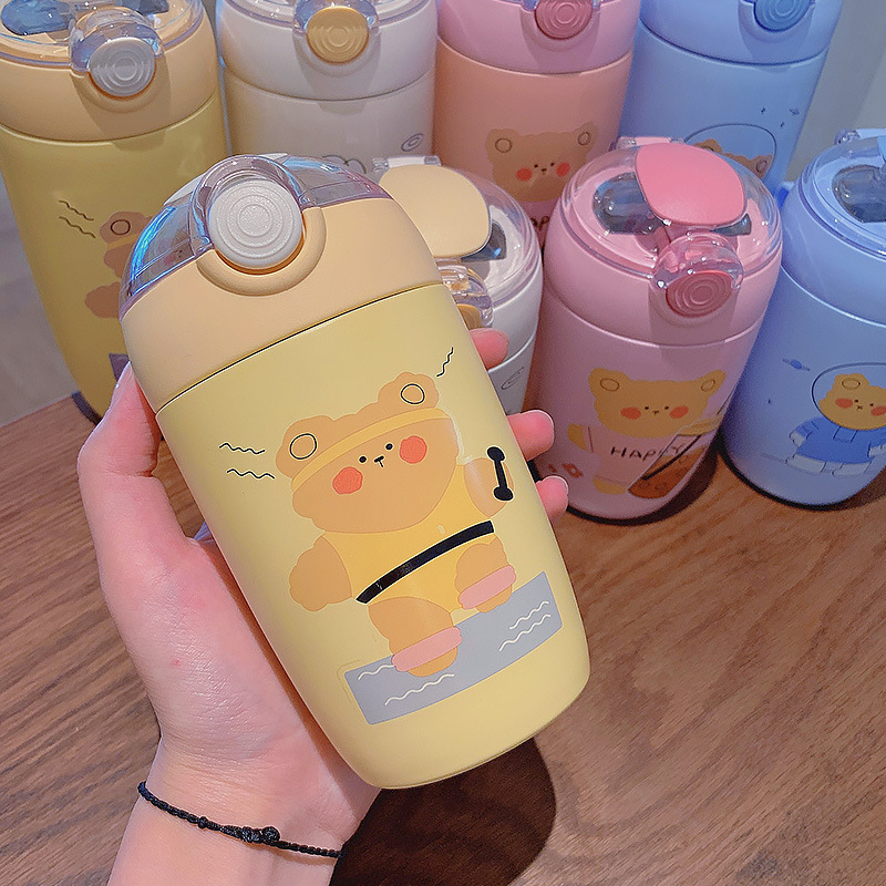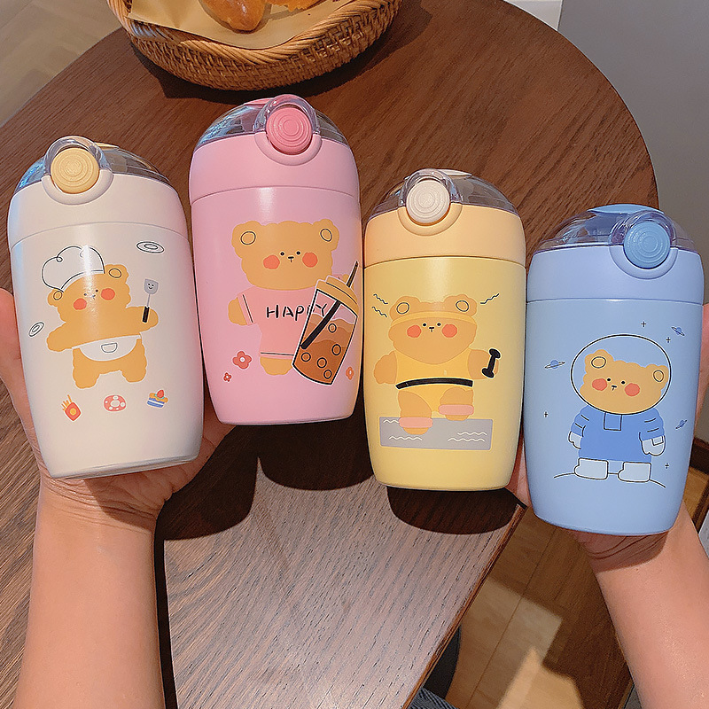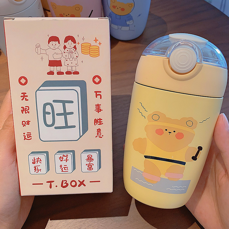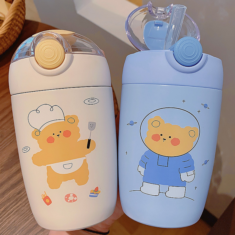 550ML幸运颜色公仔方扣保温杯304不锈钢可爱吸管杯